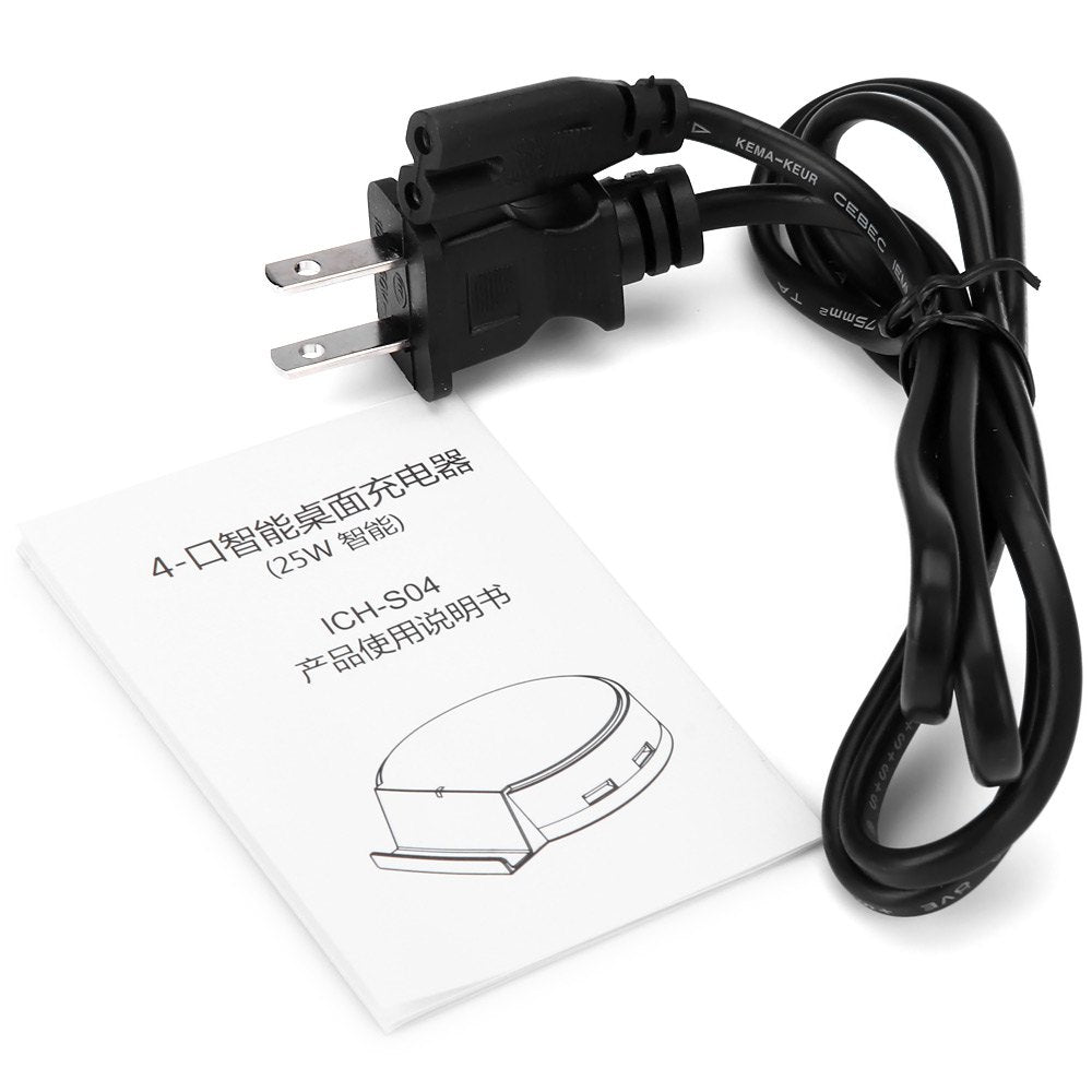 Package Contents: 1 x 4 Ports USB Charger, 1 x Power Cord, 1 x User Manual