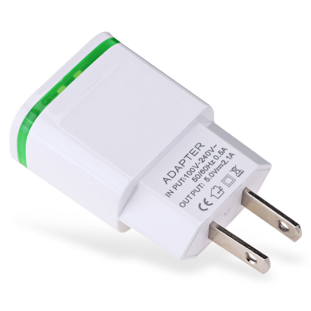 Universal 2 USB Ports Home Wall Power Supply Adapter Charger LED Light
