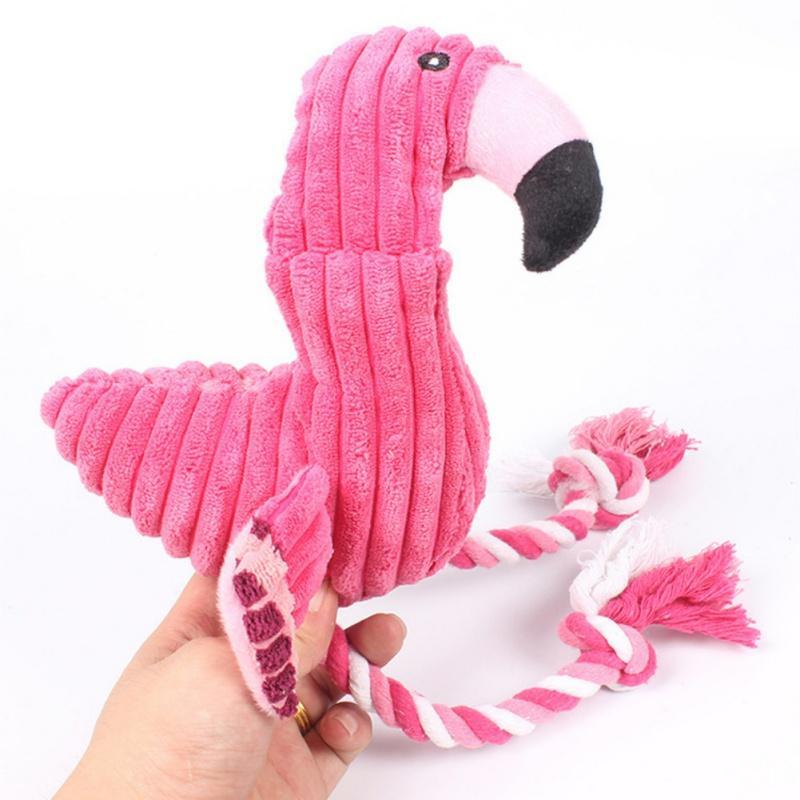 1Pc Popular Funny Wild Flamingo Shape Dog Toy Squeaky Pet Puppies Chew Toy Plaything Sound Toys (Pink 20X14X8Cm)