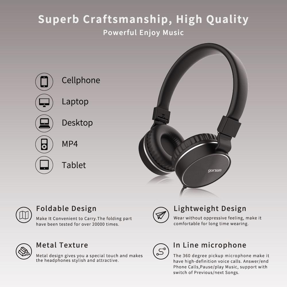 Hifi Stereo Metal Wired Headphone Foldable Headset Fm And Over-Ear Adjustable With Mic For Smart Phone For Mobile Gorsun Gs776