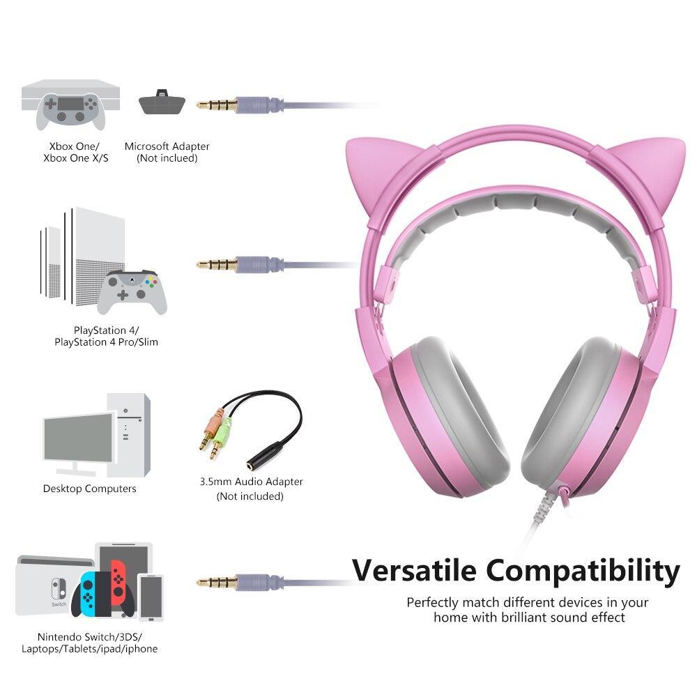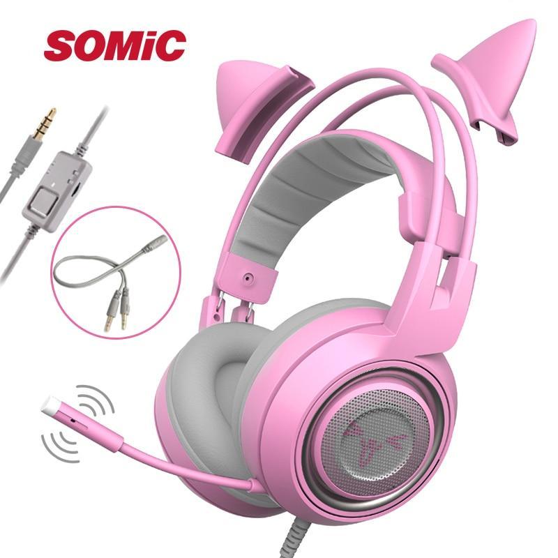 Somic G951S Ps4 Pink Cat Ear Noise Cancelling Headphones 3.5Mm Plug Girl Kids Gaming Headset With Microphone For Phone