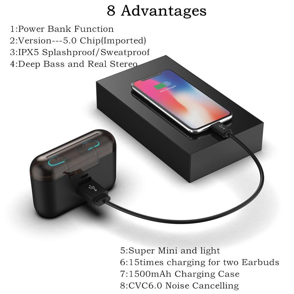 V 5.0 Tws Wireless Headphones Deep Bass Bluetooth Earphones 3D Stereo Handsfree Sports Earbuds Gaming Headset For Phone