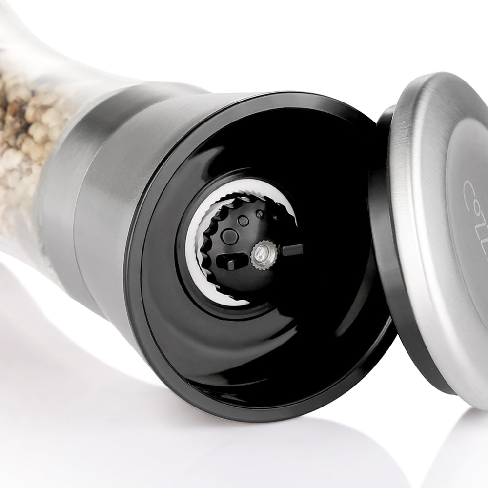 Operate by manually rotating, our grinder is a simple and labor-saving way to grind the spice. Just unscrew lid for refilling, twist the knob to reach perfect coarseness you want. Made to be detectable. Each part of the grinder can be washed separately.