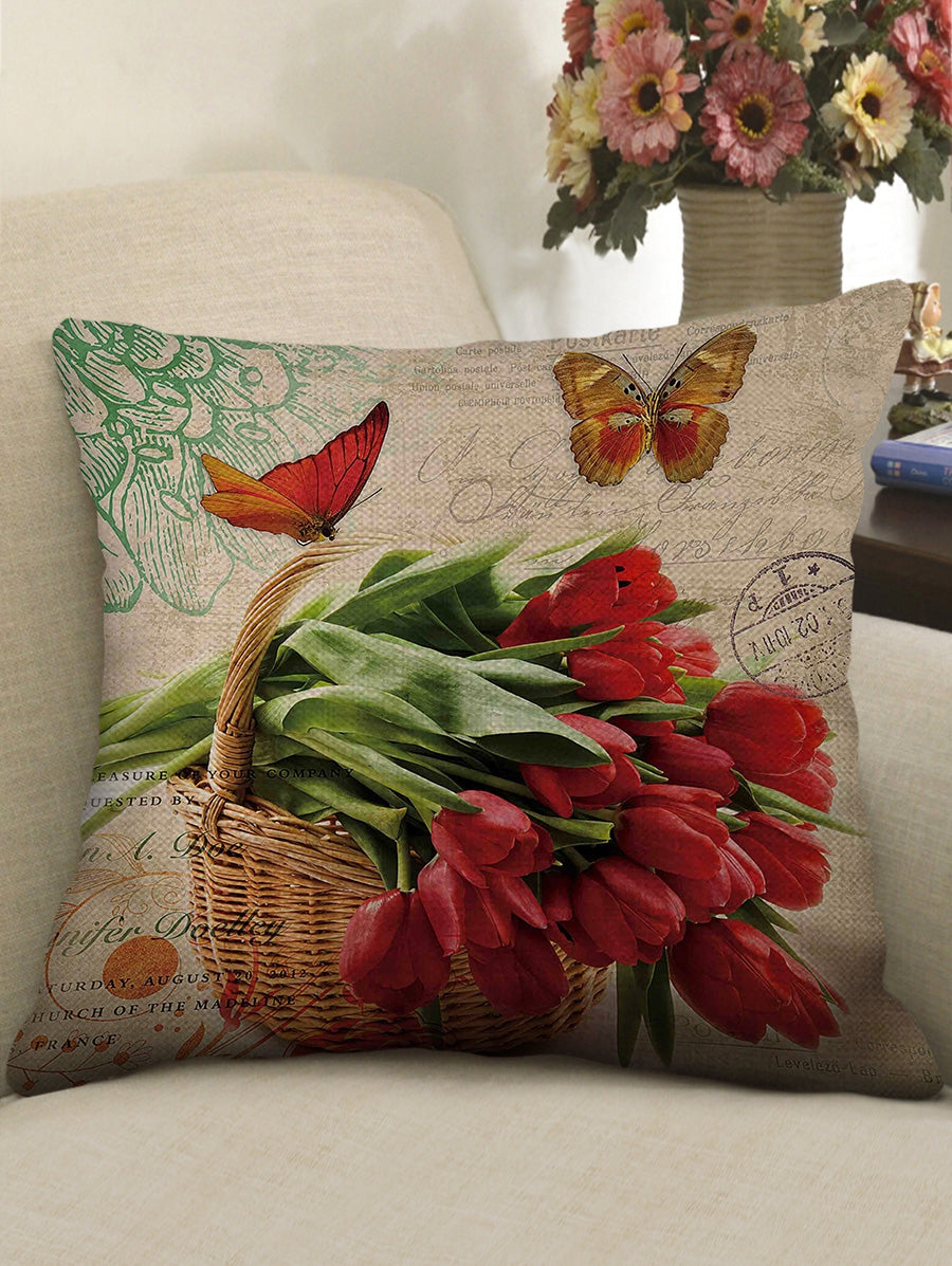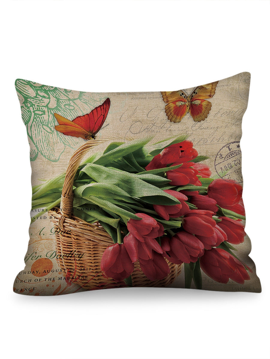 Flowers Print Decorative Linen Pillowcase