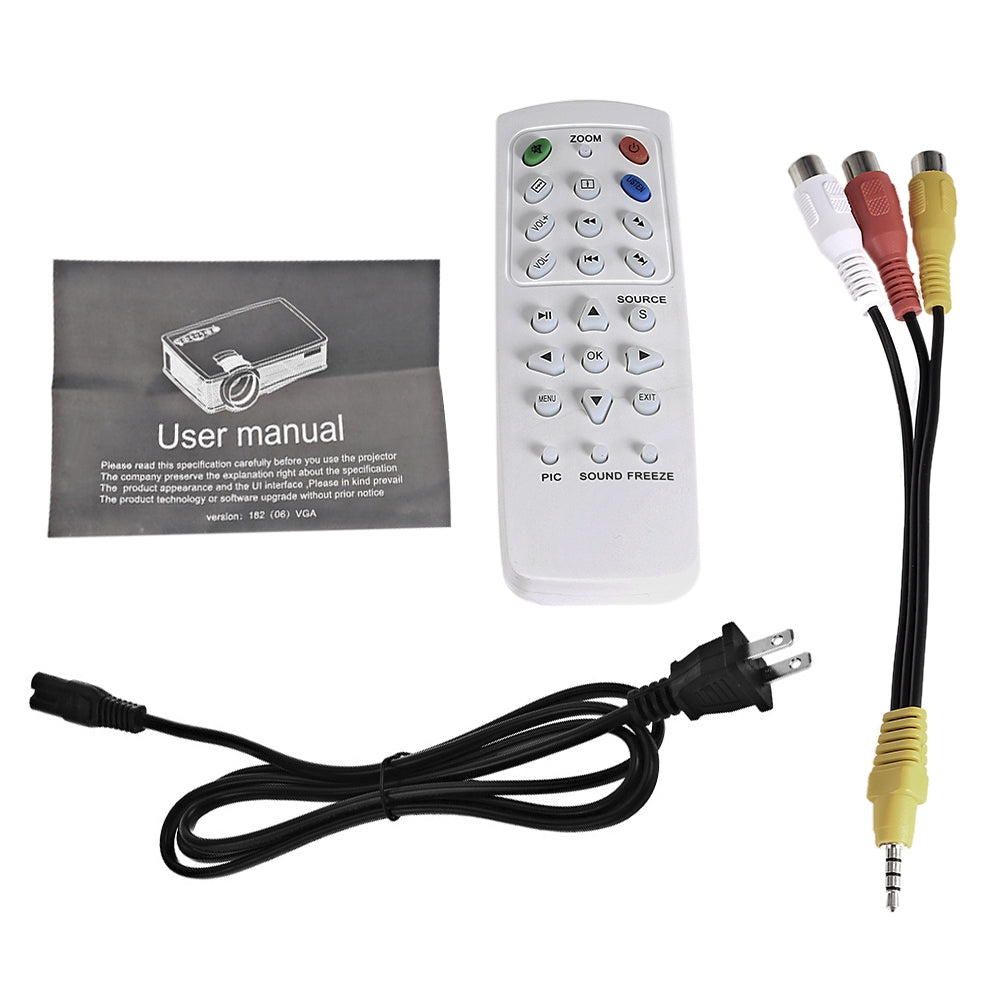 Package Contents: 1 x GP - 12 LED Projector, 1 x Remote Controller, 1 x Power Cable, 1 x AV Cable, 1 x English User Manual