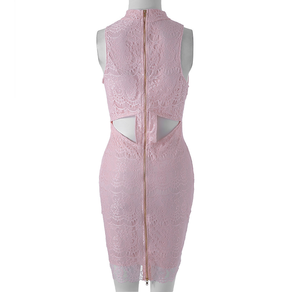 Sexy Turtle Neck Sleeveless Bodycon Hollow Out Women's Dress