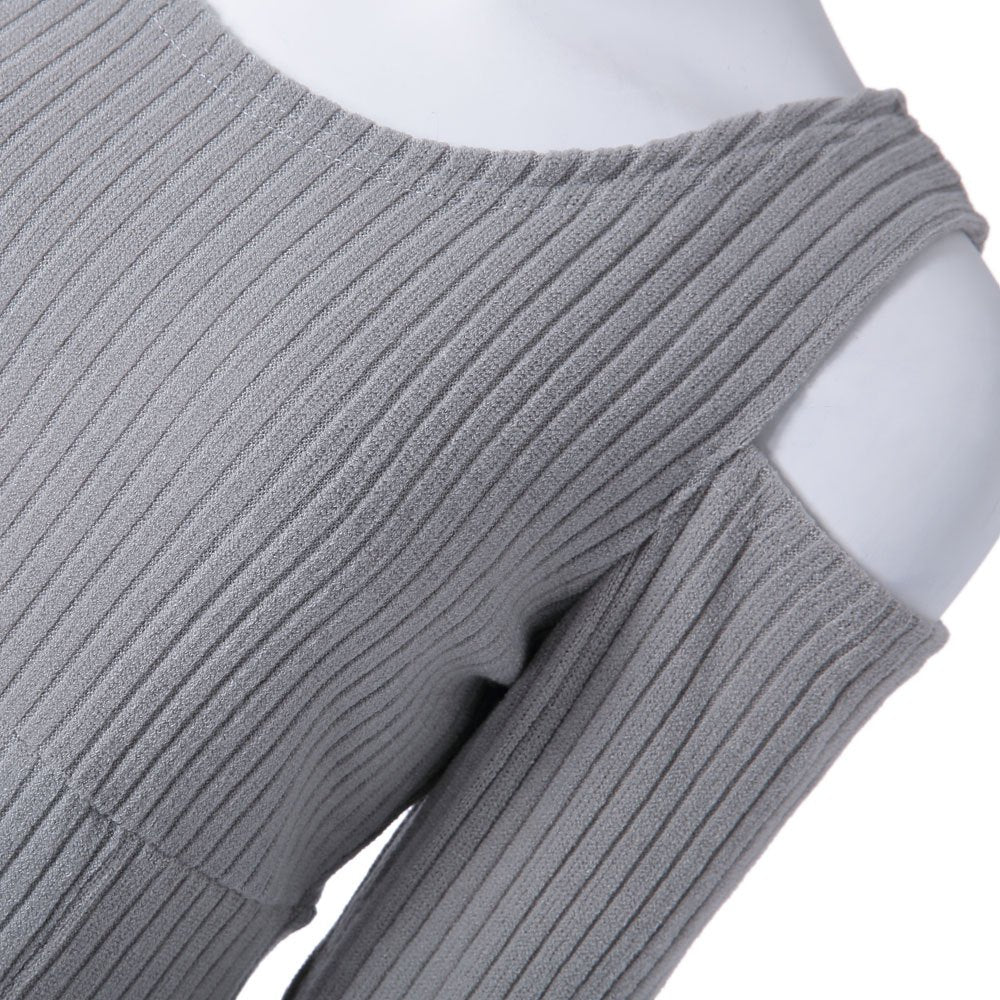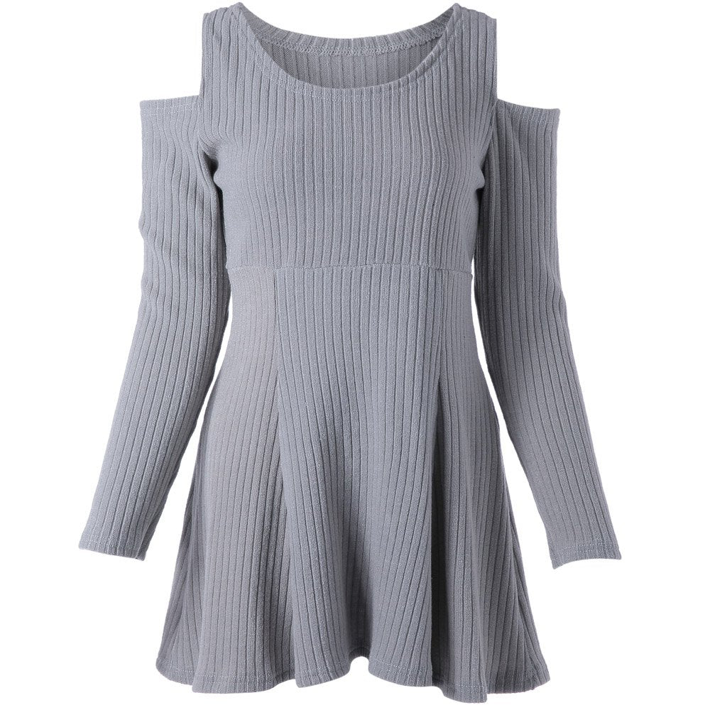 Stylish Scoop Neck Long Sleeve Hollow Out Solid Color Dress For Women