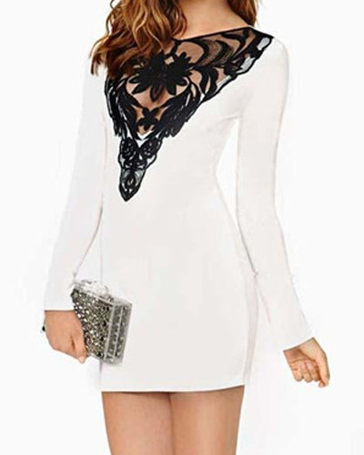 Sexy V-Neck Lace Long Sleeve Dress For Women