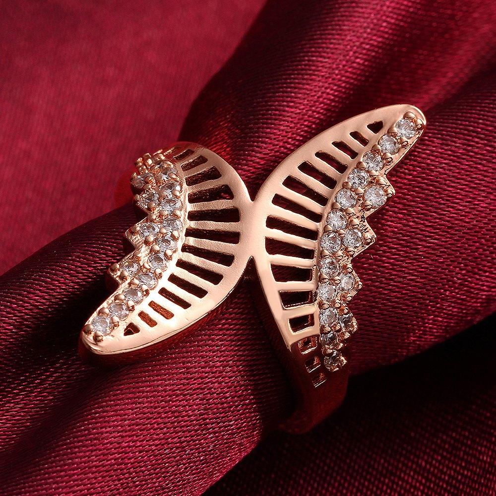 Sweet Women's Rhinestone Inlaid Openwork Butterfly Ring
