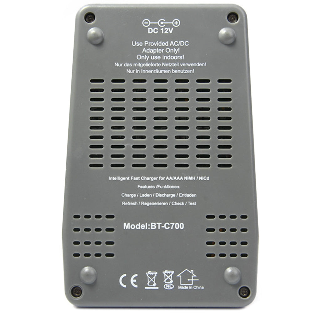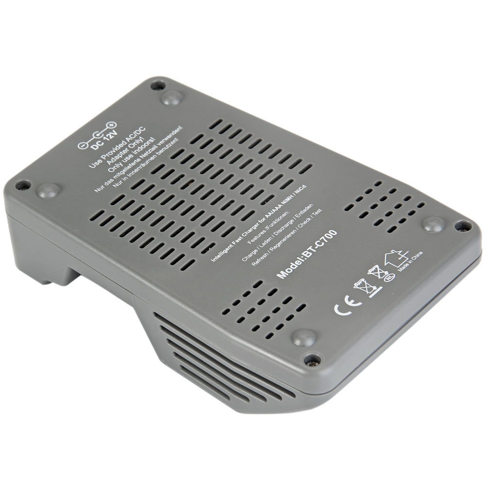The charger can charge batteries of different type and size and with different capacity at the same time. It also integrates the minus delta voltage ( -ΔV ) function, which monitors the voltage over the charging cycle. When battery is fully charged, the charger will switch to trickle charging automatically. Therefore the battery will be kept at its optimum capacity. The charger also includes overheat detection to protect rechargeable batteries and charger itself from overheating.