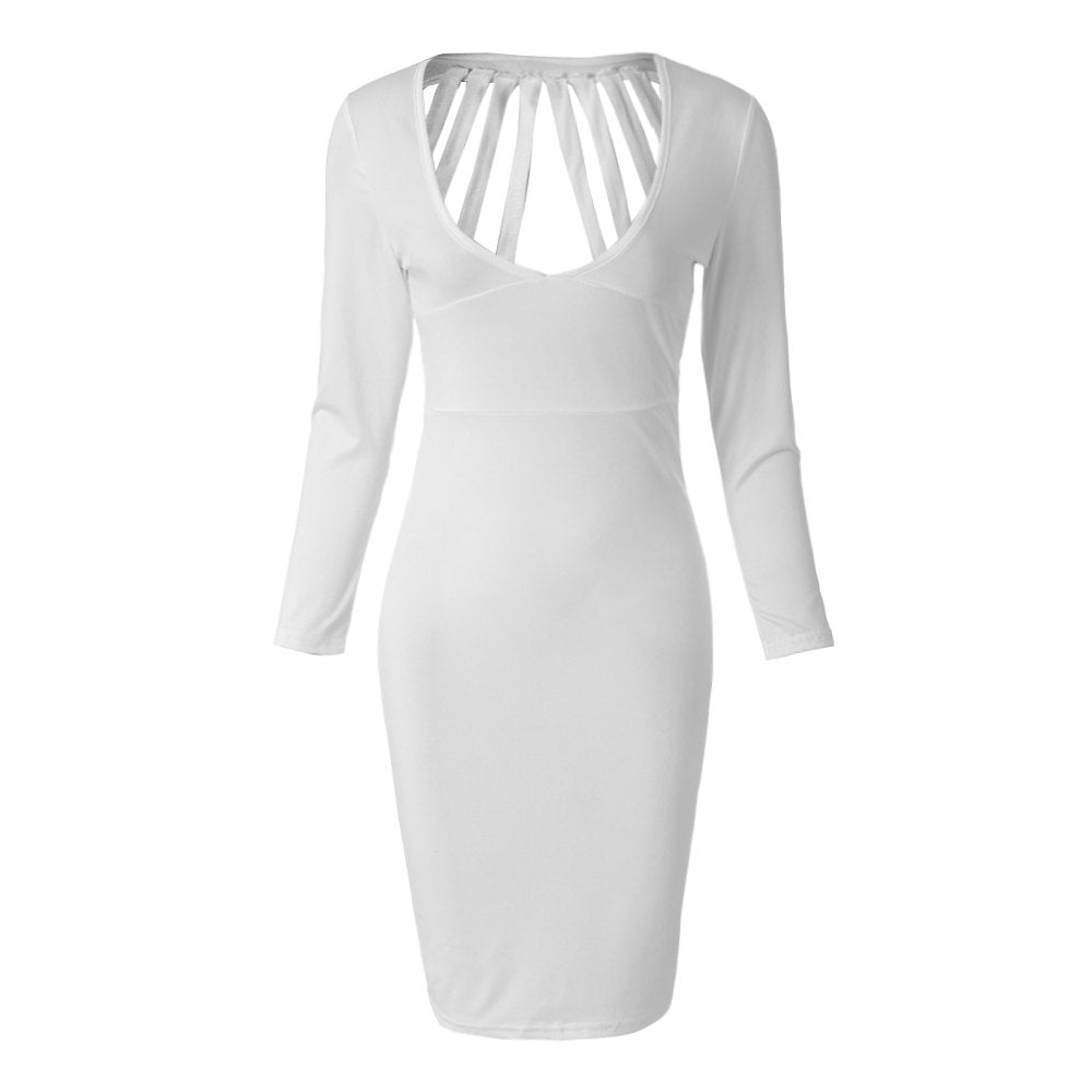 Sexy Plunging Neck Solid Color Long Sleeve Women's Dress
