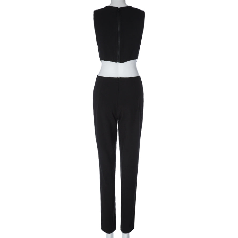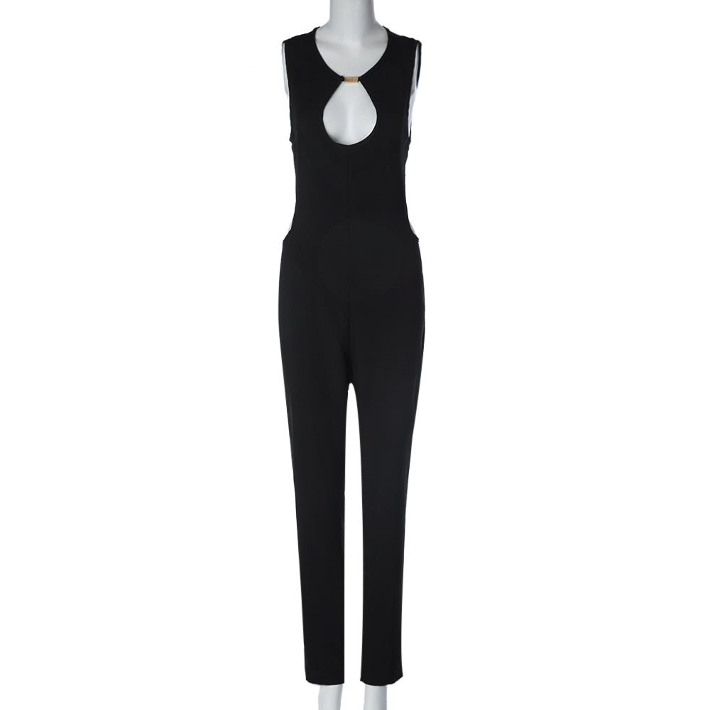 Sexy Round Neck Sleeveless Hollow Out Women's Jumpsuit