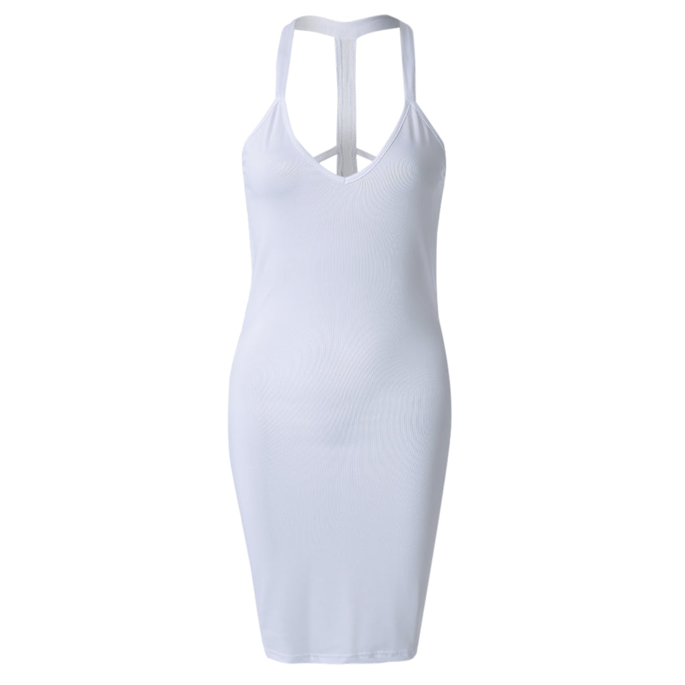 Sexy Plunging Neck Solid Color Bodycon Sleeveless Dress For Women