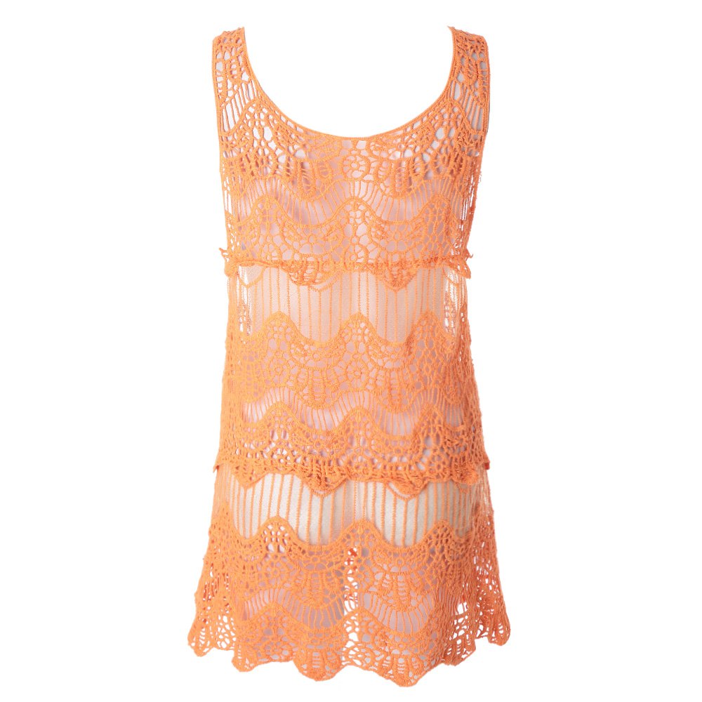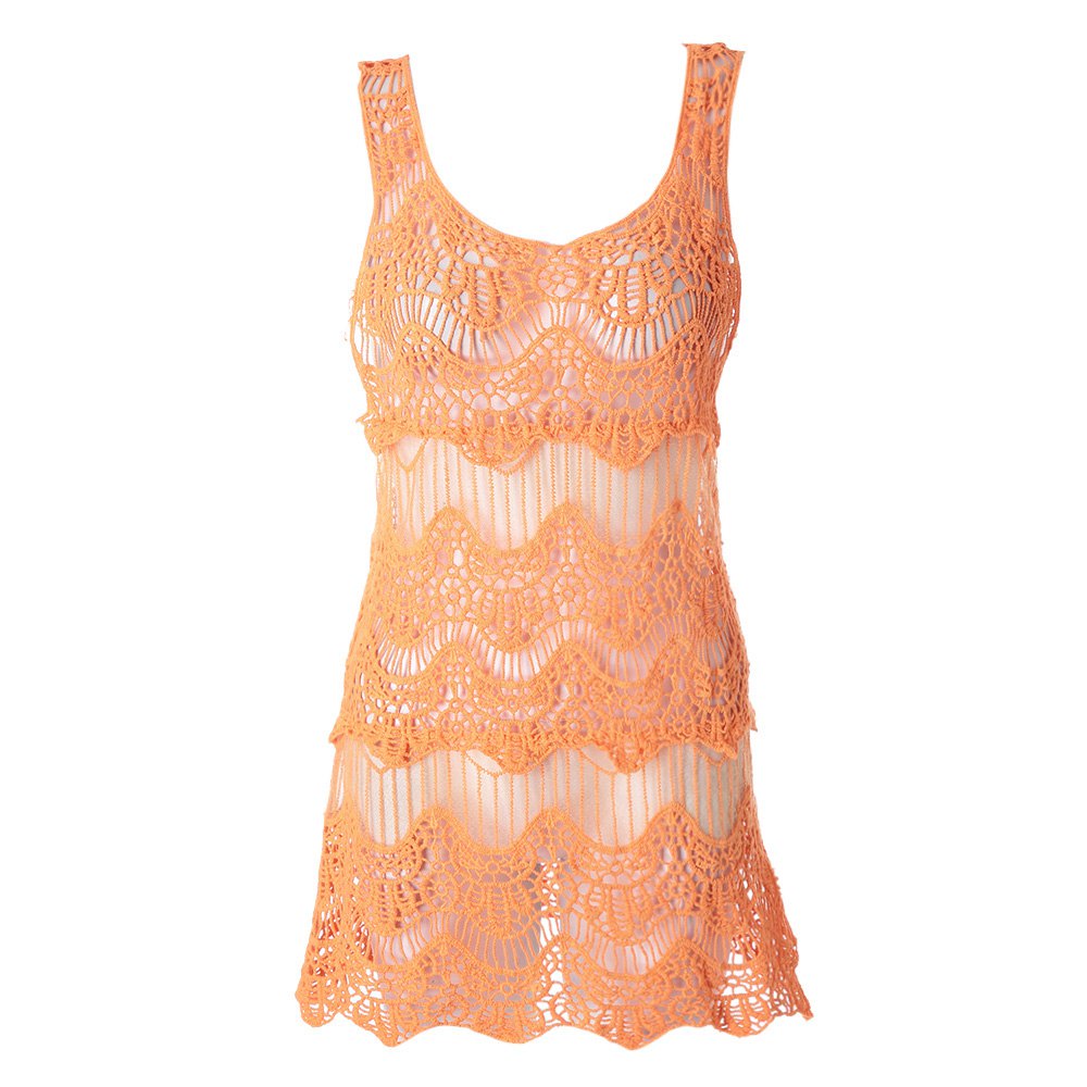 Stylish Scoop Collar Sleeveless Solid Color Hollow Out Women's Dress