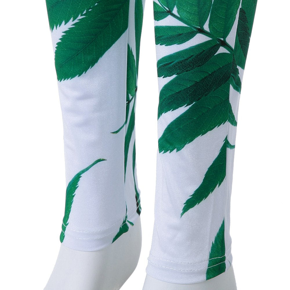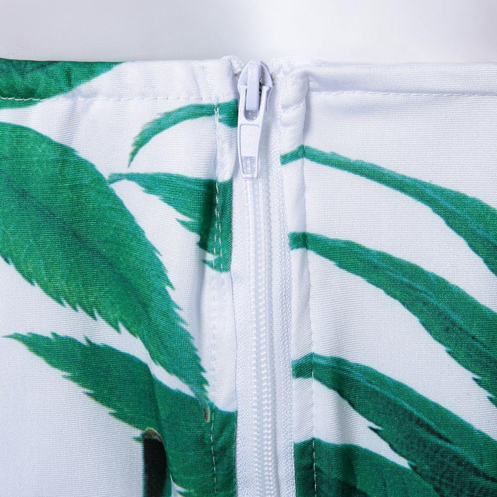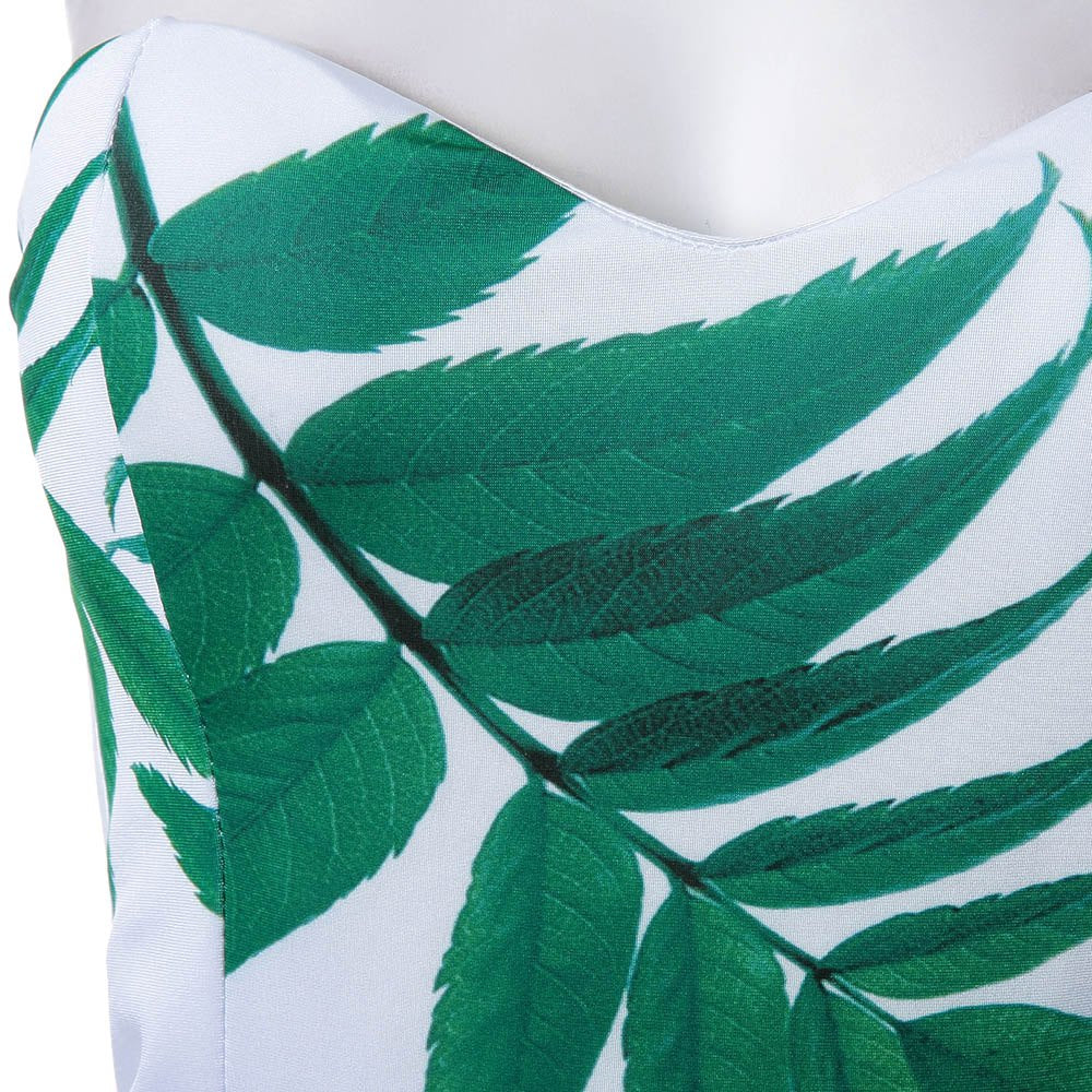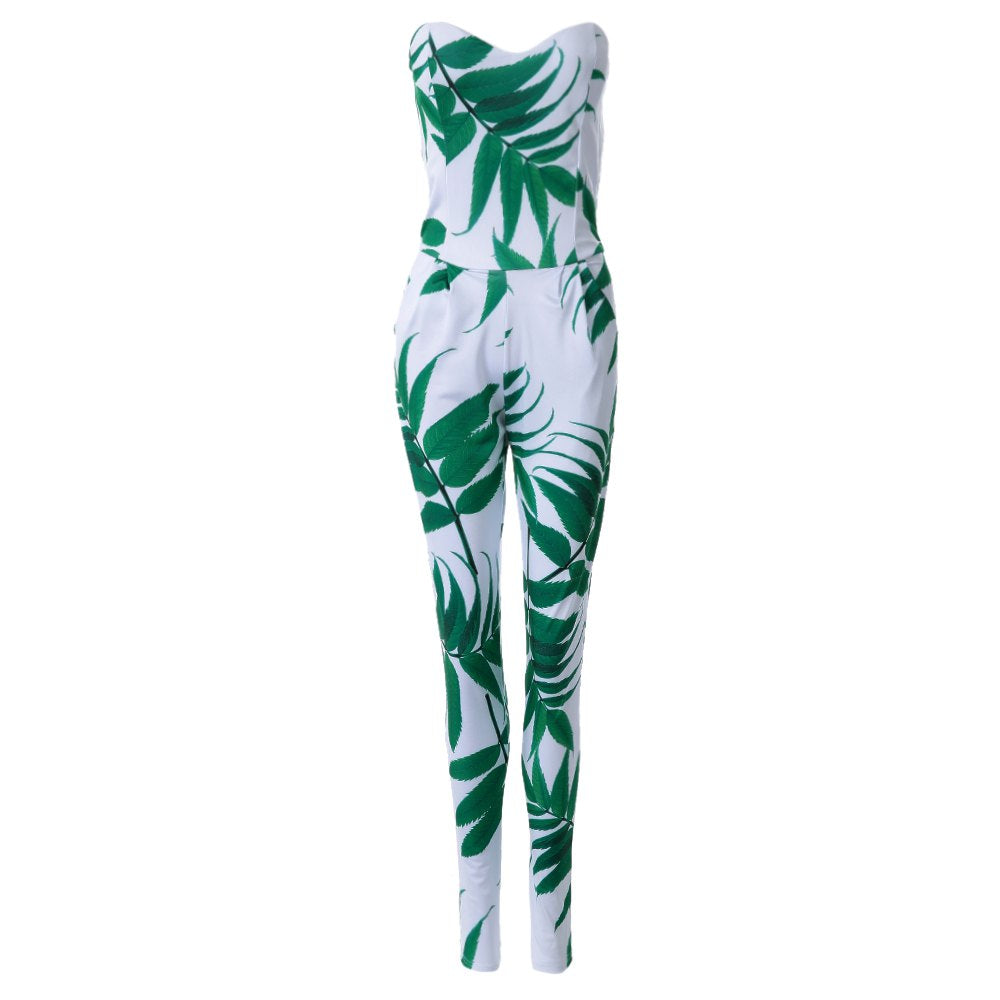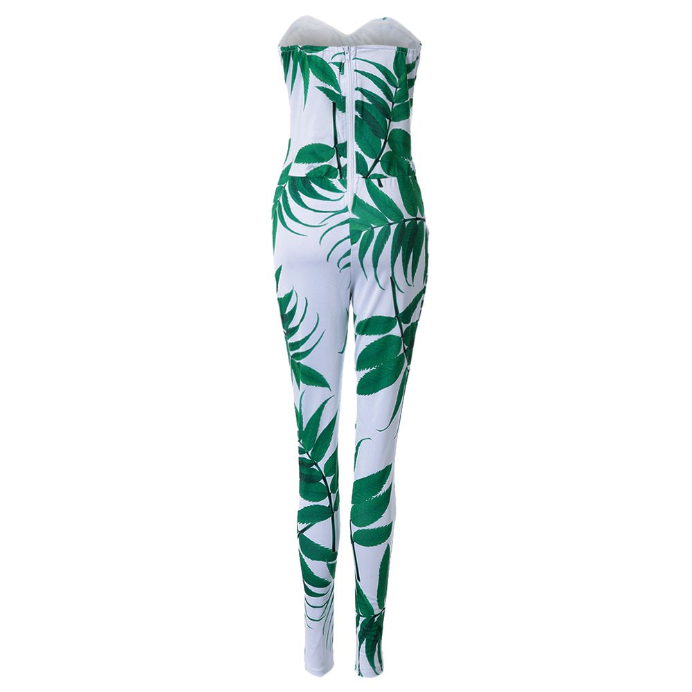Sexy Strapless Sleeveless Leaf Print Pocket Design Women's Jumpsuit