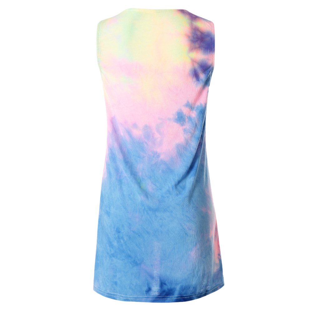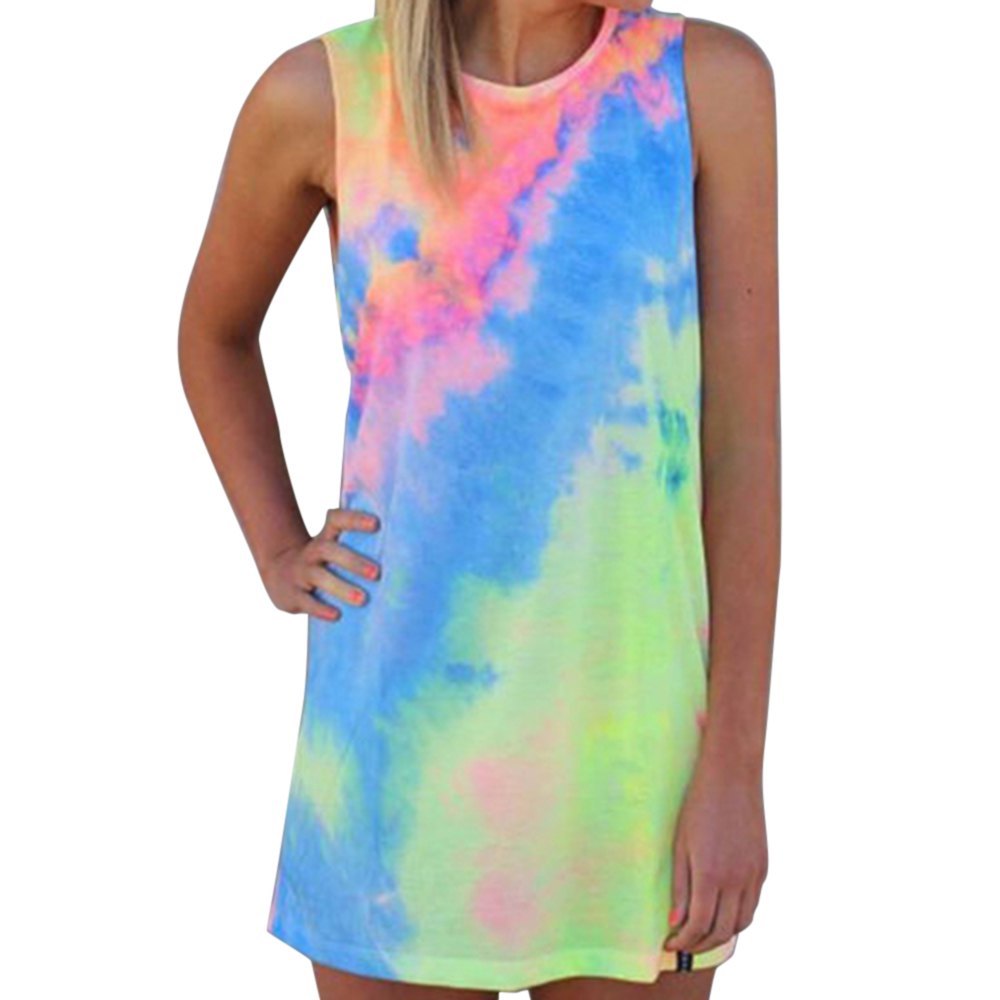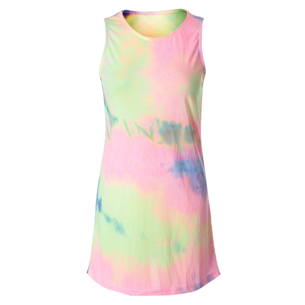 Stylish Round Collar Sleeveless Printed Colorful Women's Dress