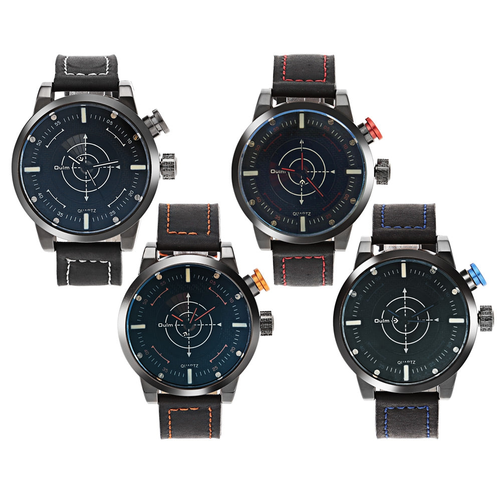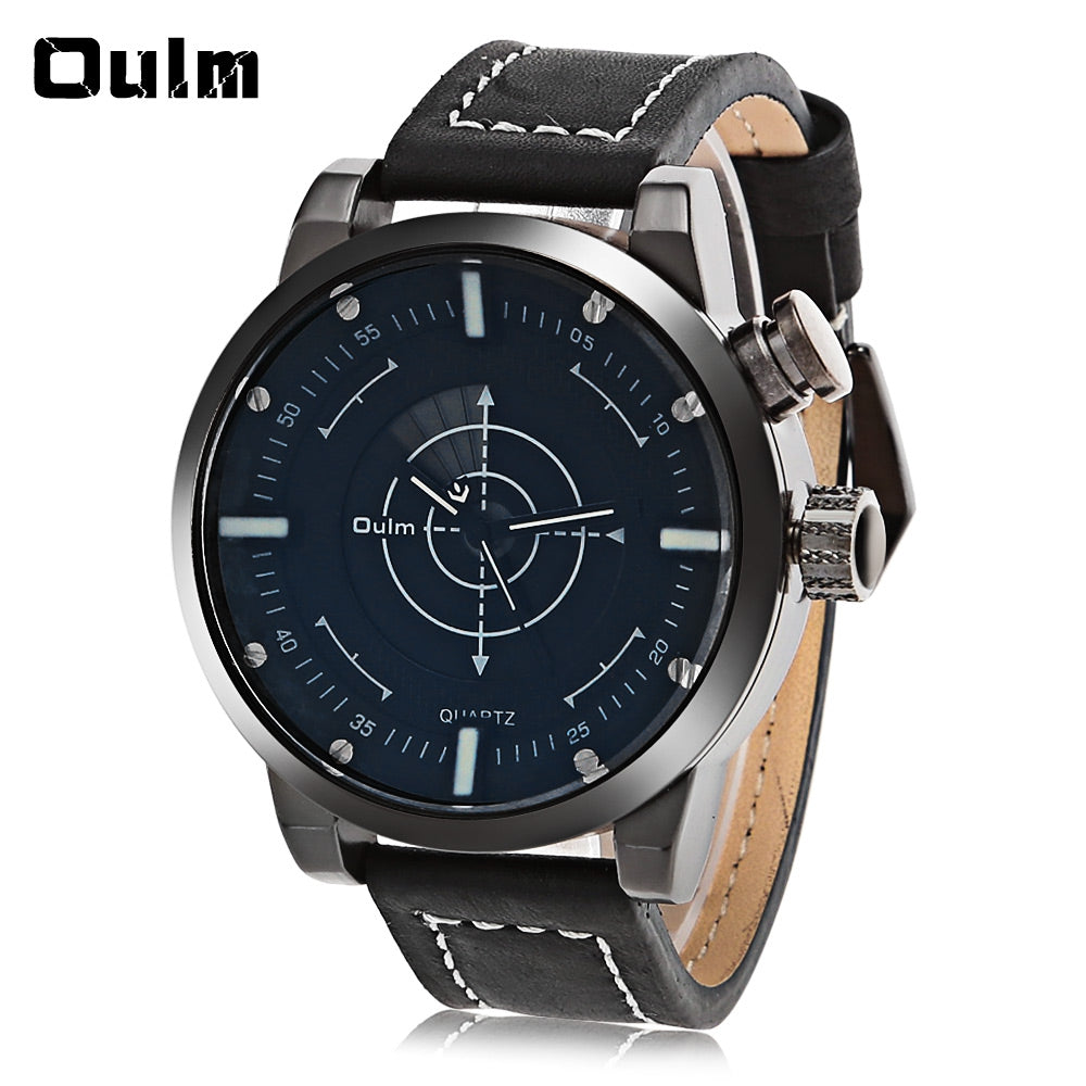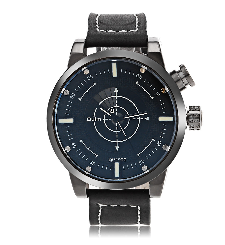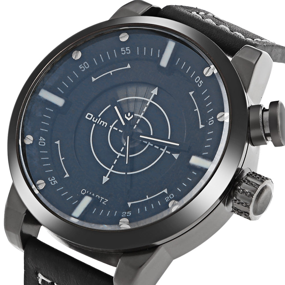 Oulm 3558 LED Scanning Leather Band Men Double Movt Watch