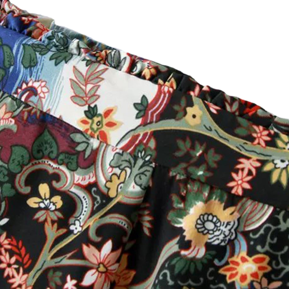 Retro Style High Waist Floral Print Women's Flare Leg Pants