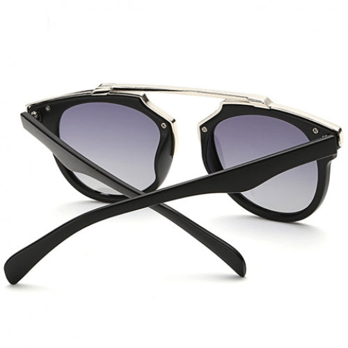 Chic Silver Metal Embellished Matte Black Sunglasses For Women