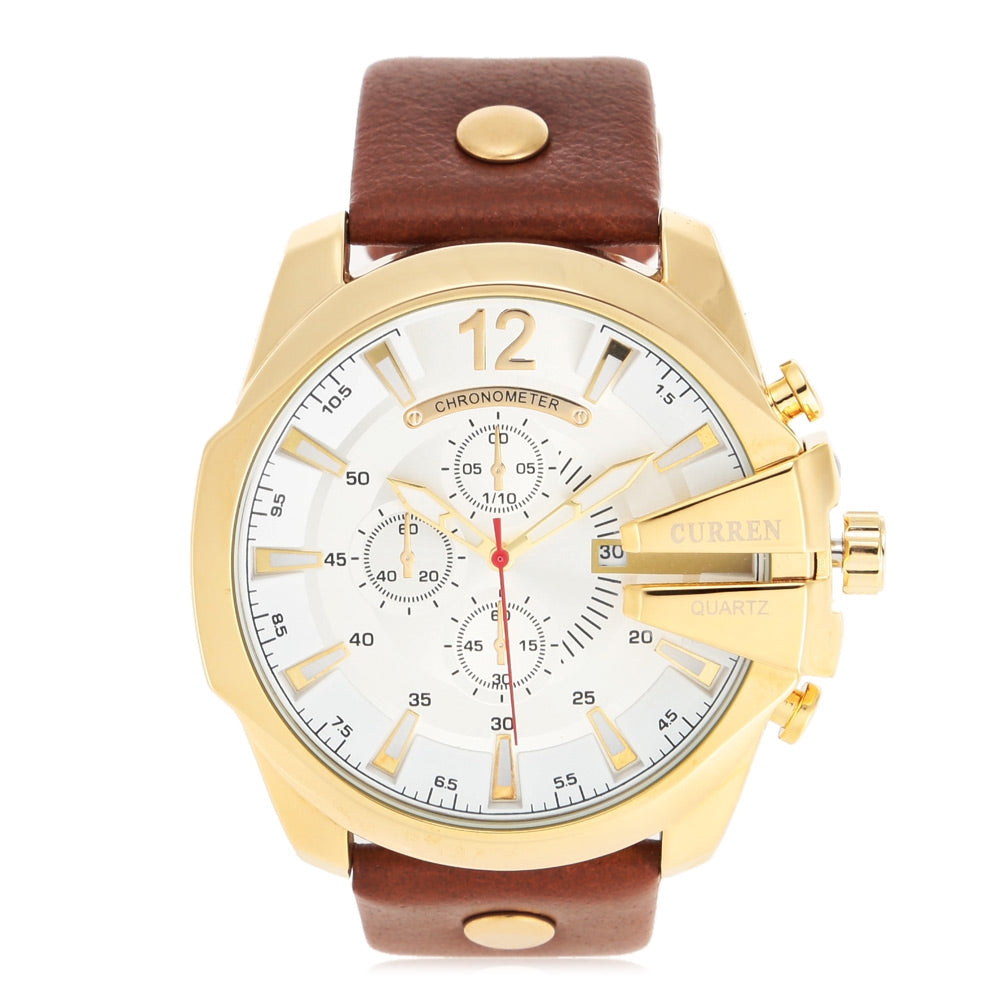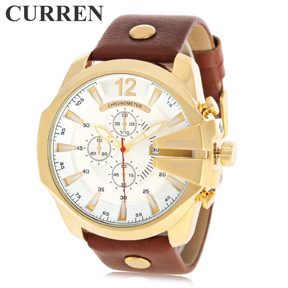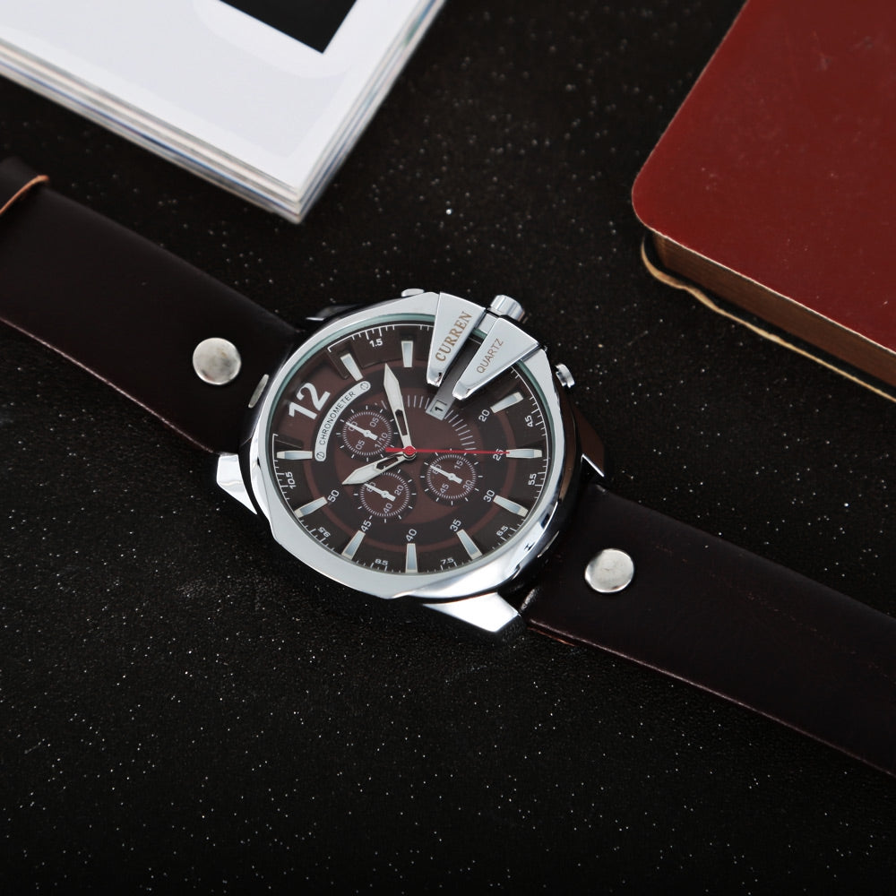 Curren 8176 Men Quartz Watch with Date Display Leather Band Decorative Sub-dials