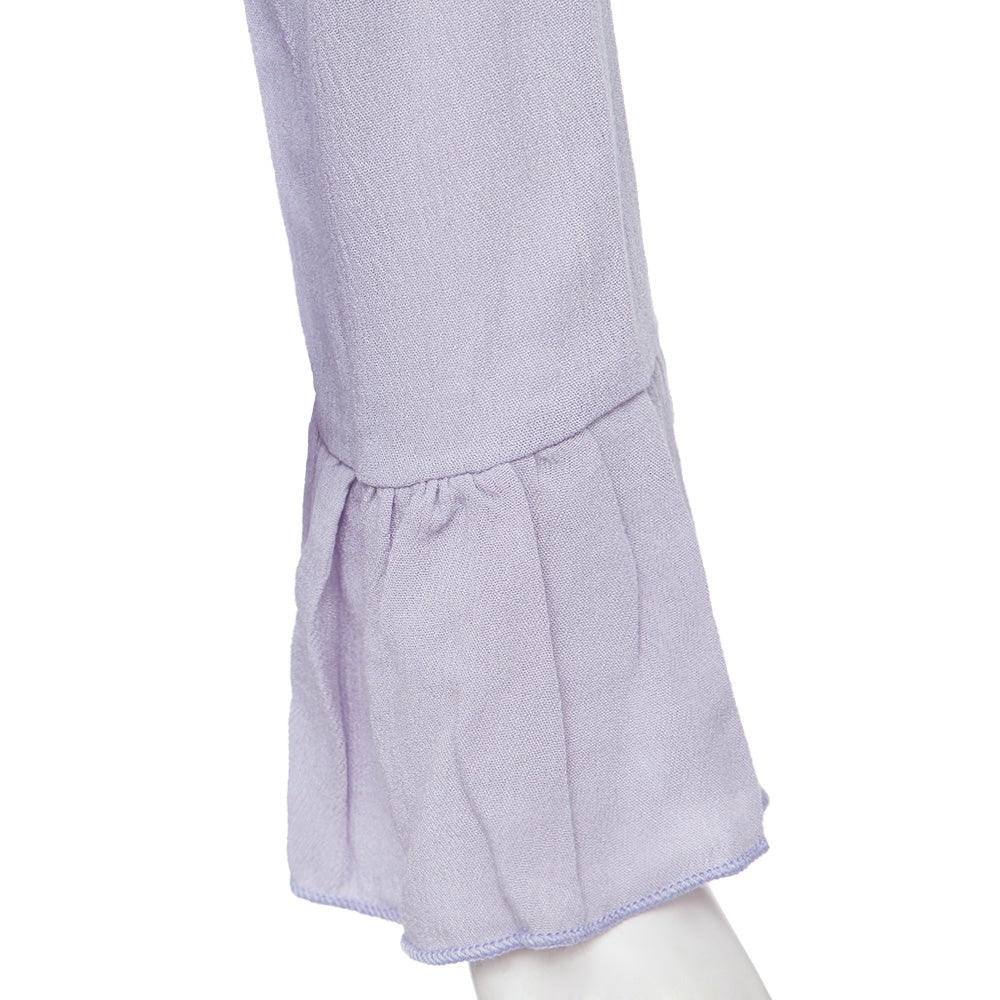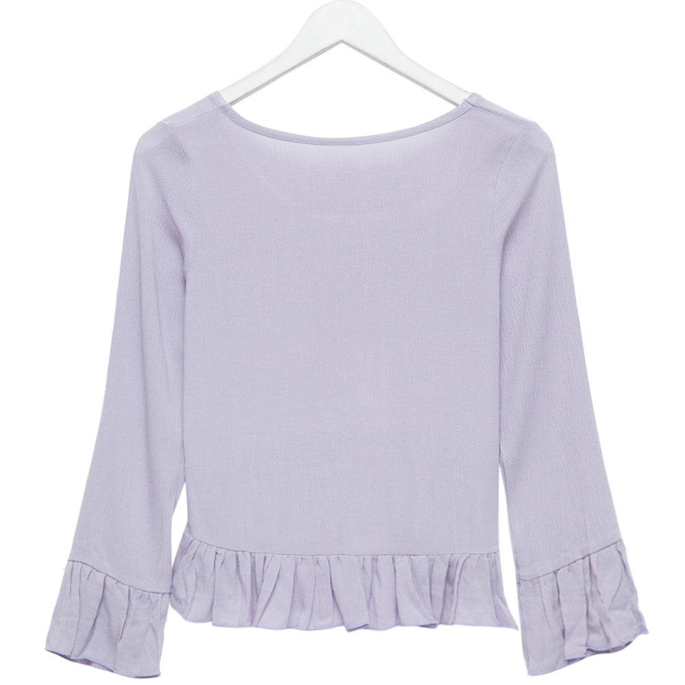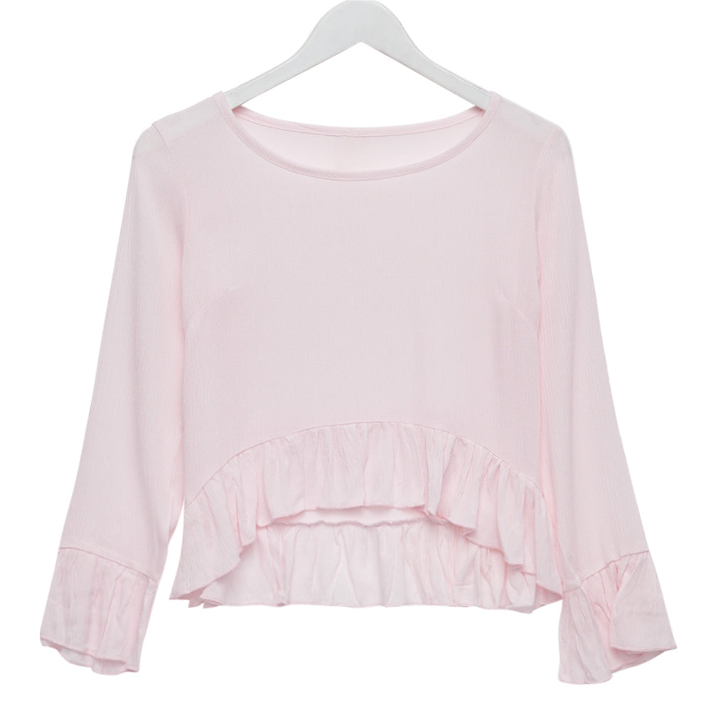- Stylish Scoop Collar Flare Sleeve Solid Color Flounced Women's Blouse