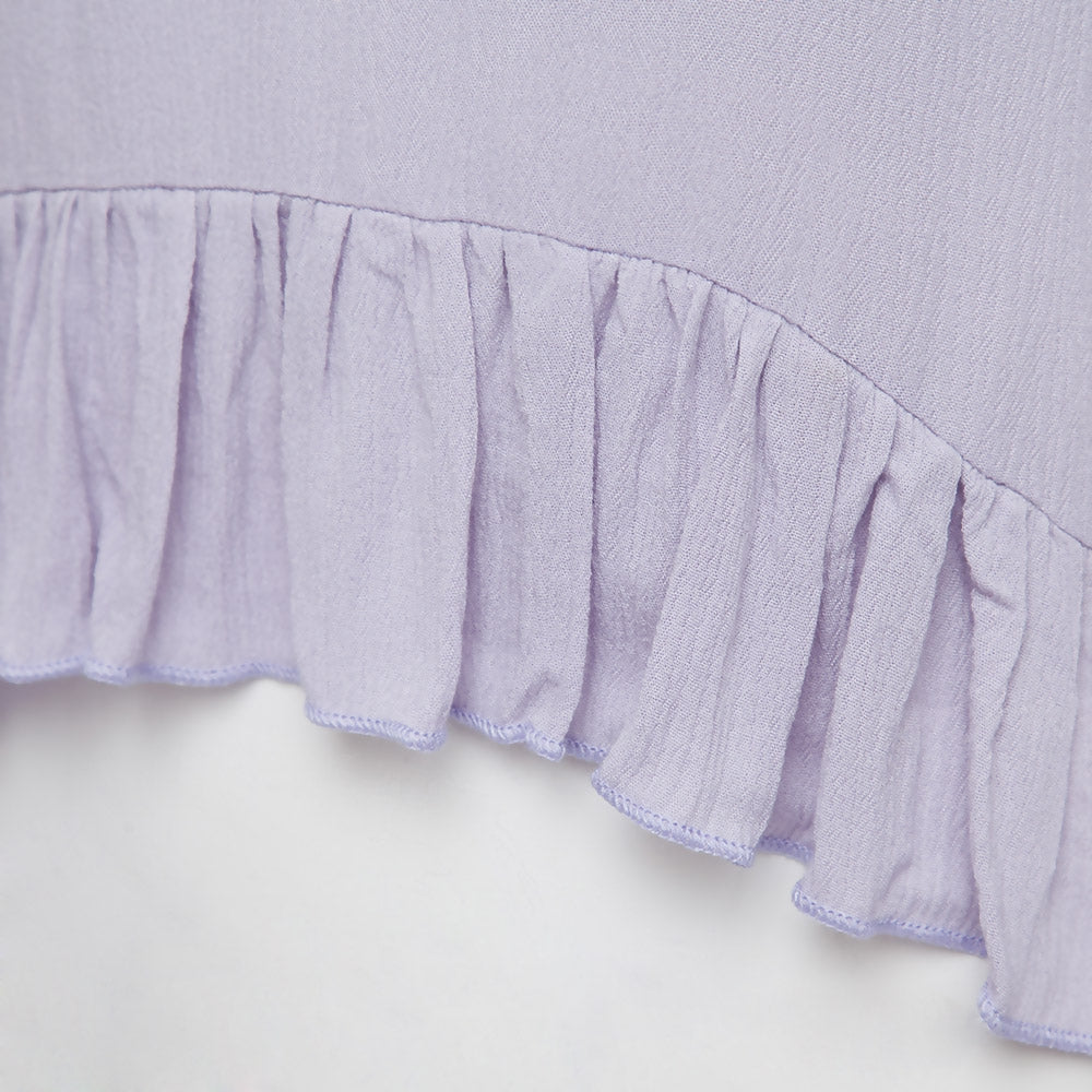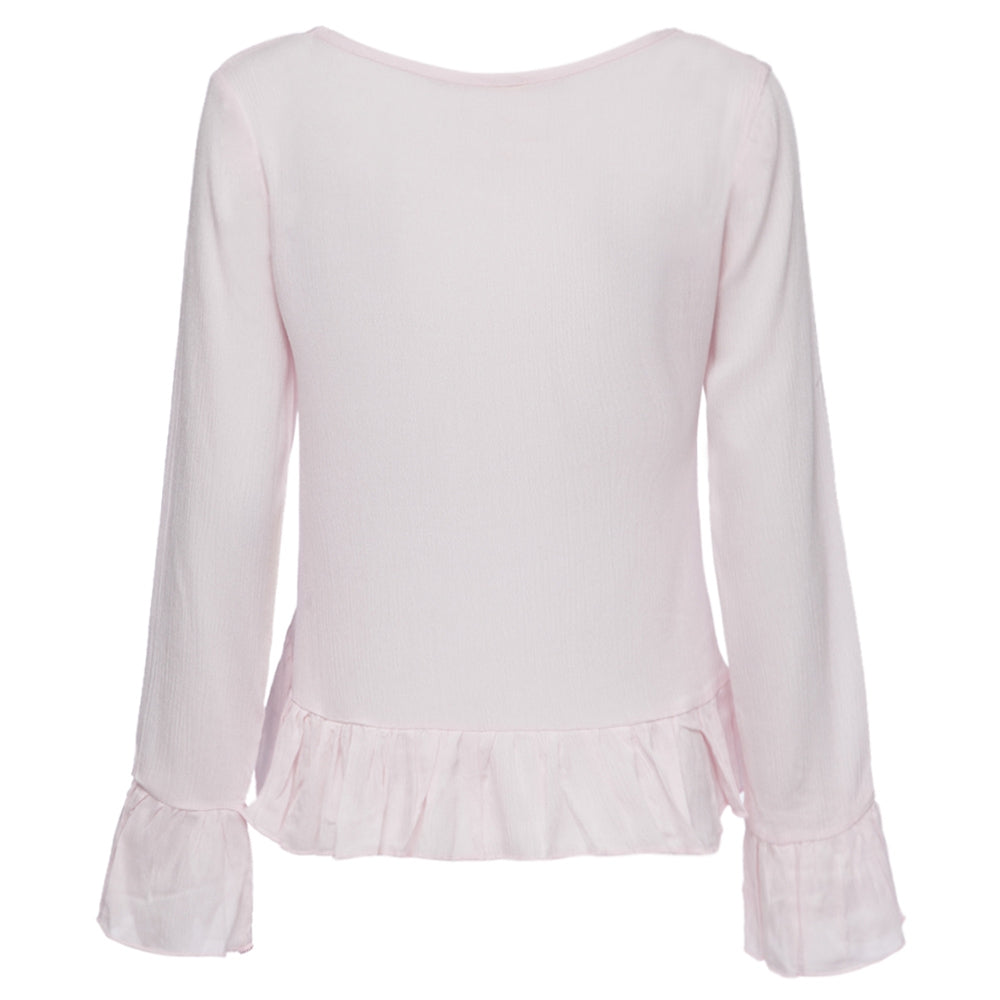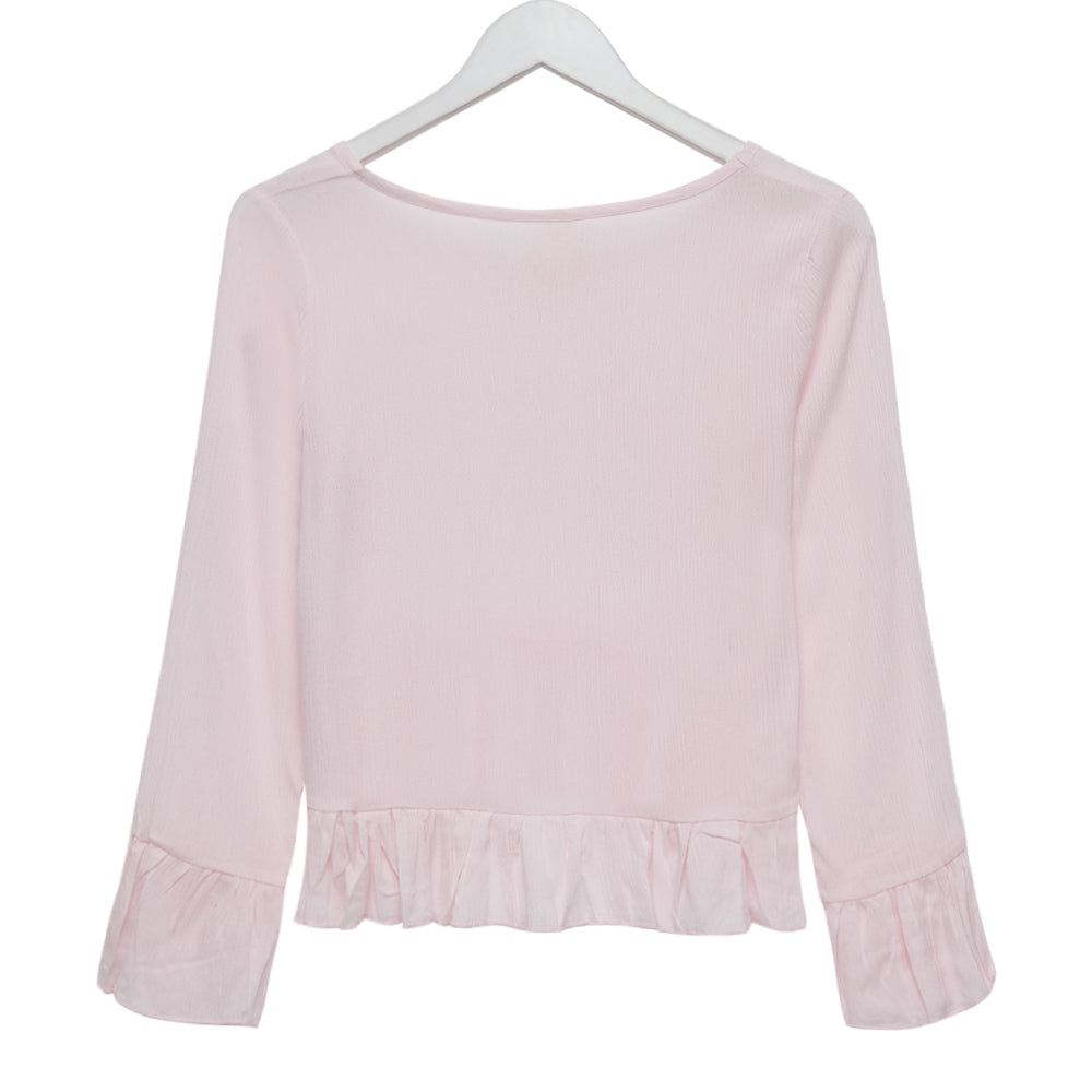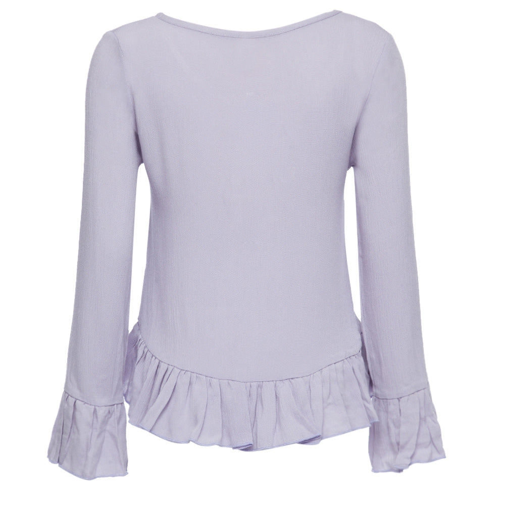 - Stylish Scoop Collar Flare Sleeve Solid Color Flounced Women's Blouse