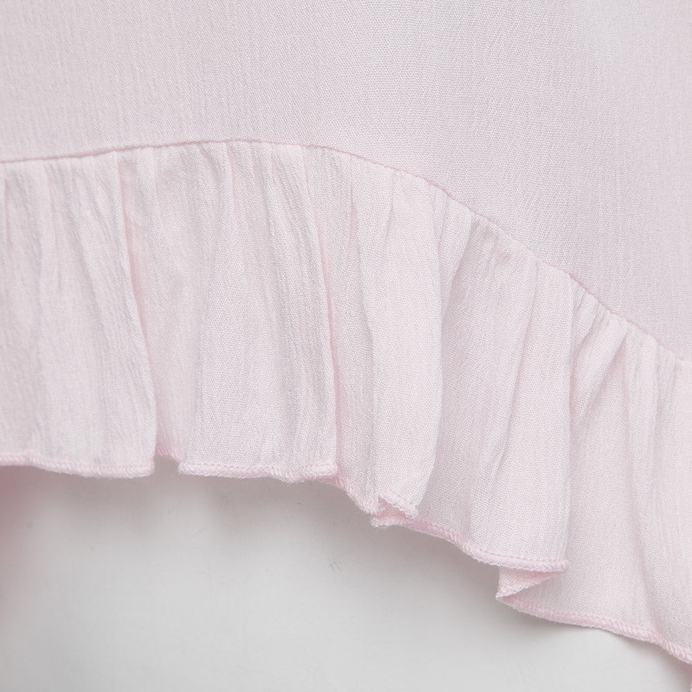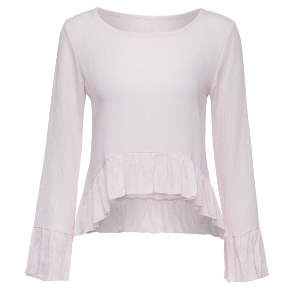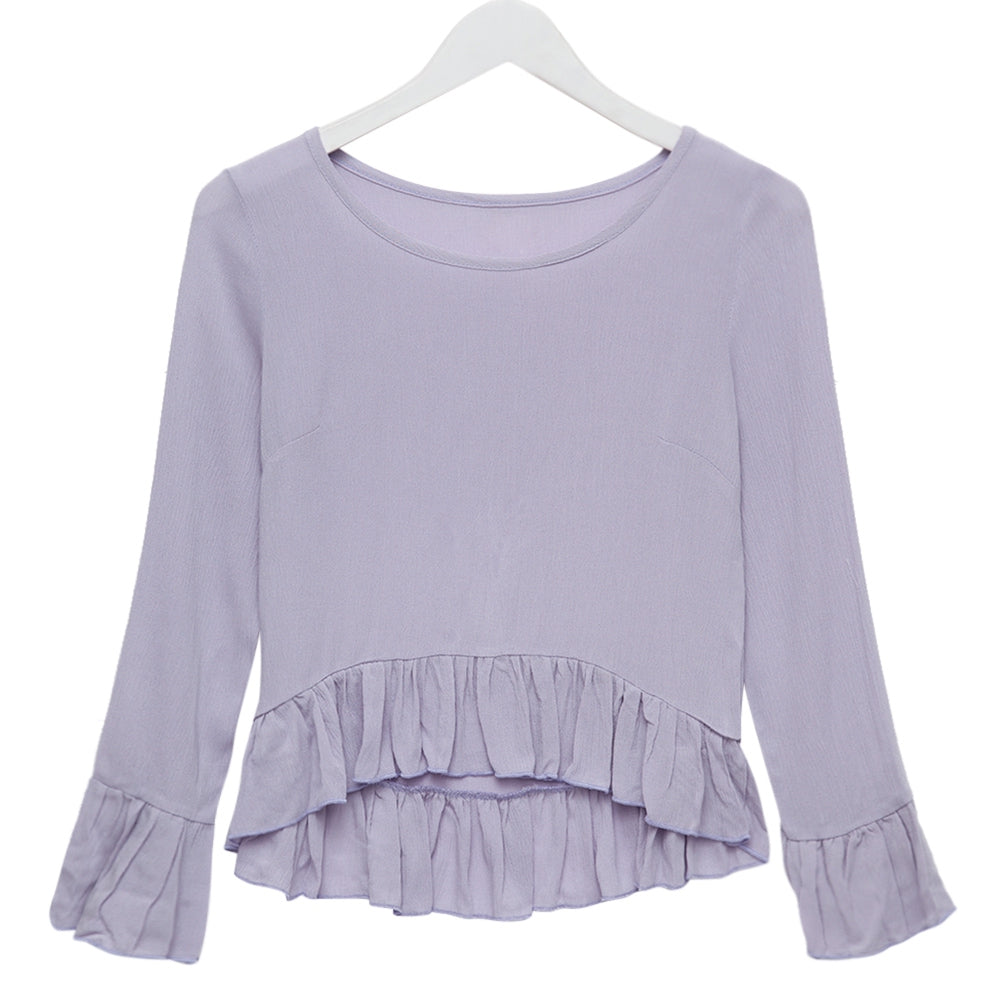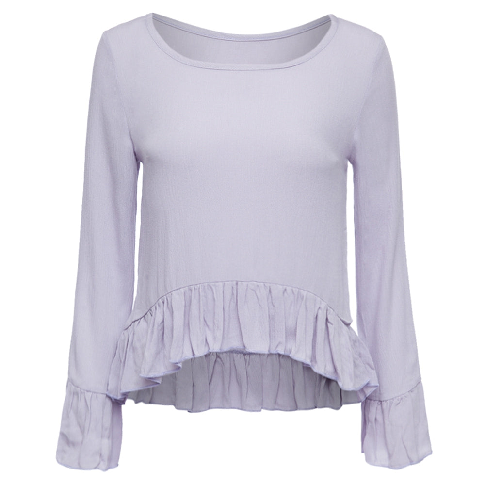 Stylish Scoop Collar Flare Sleeve Solid Color Flounced Women's Blouse