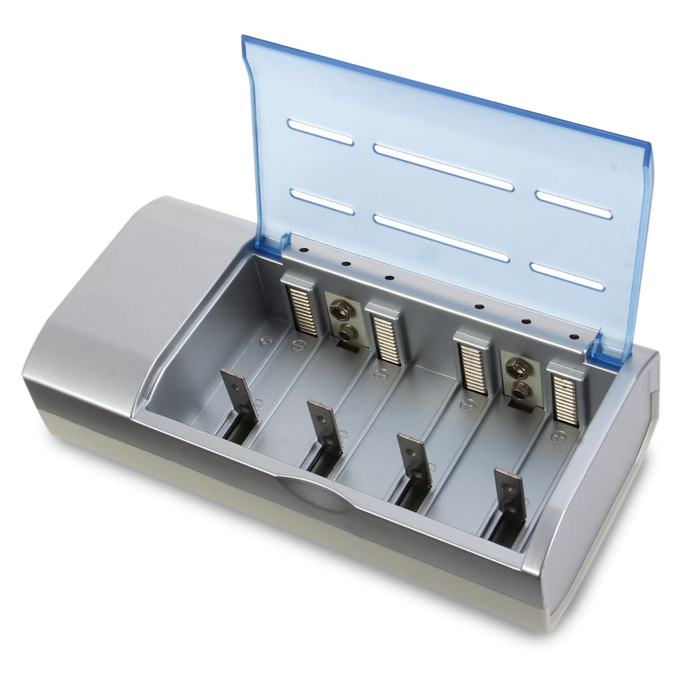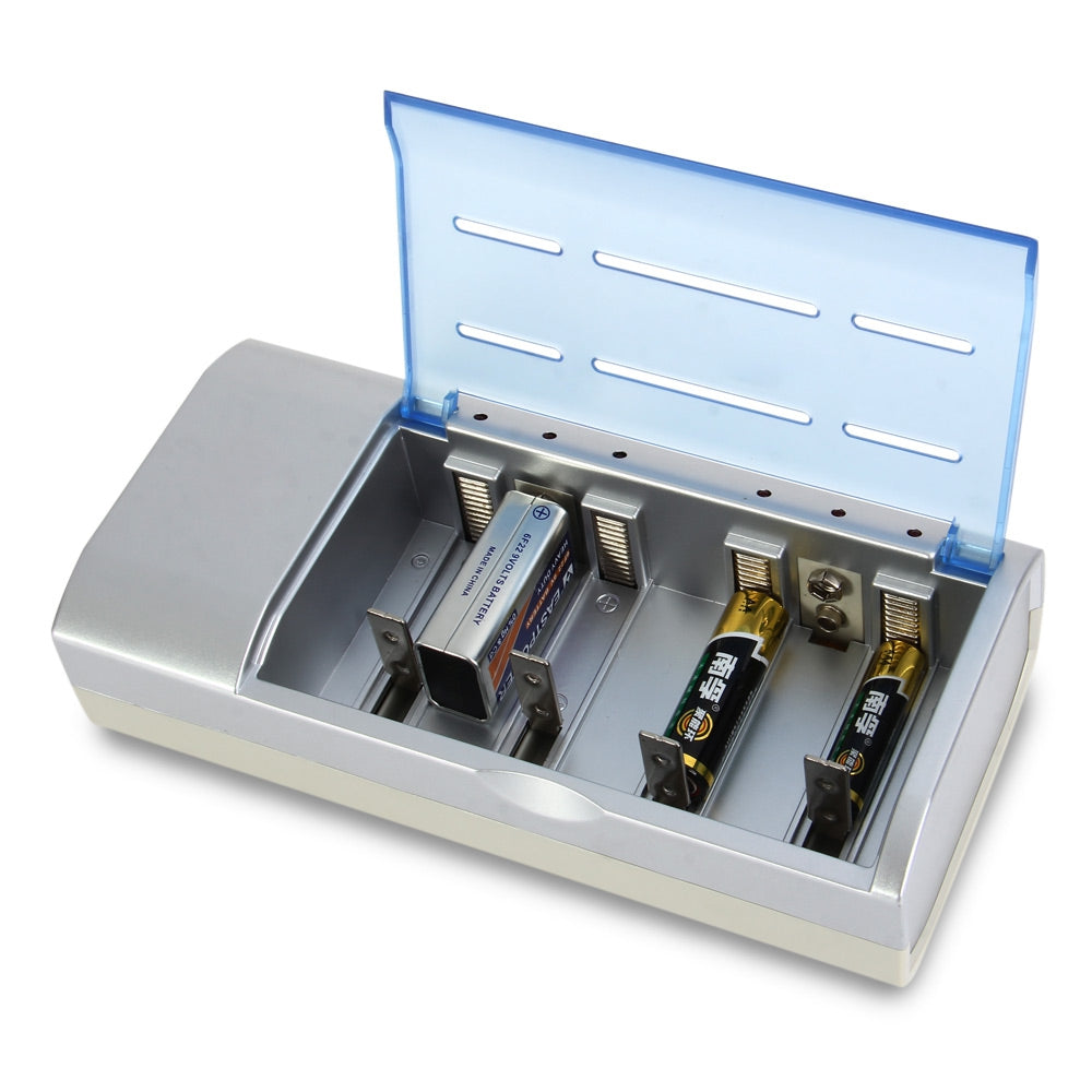 - This charger can charge 1 - 4 pcs AA / AAA / C / D and 1 - 2 pcs 9V Ni-Mh / Ni-Cd rechargeable batteries ( The batteries in different sizes or capacities can not be charged together ).