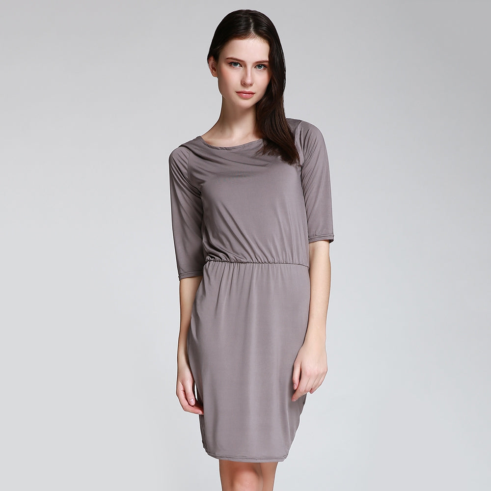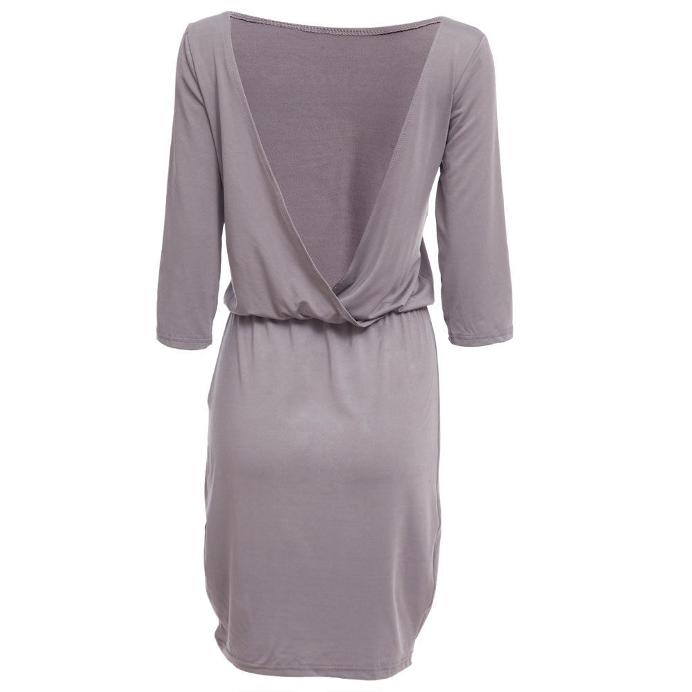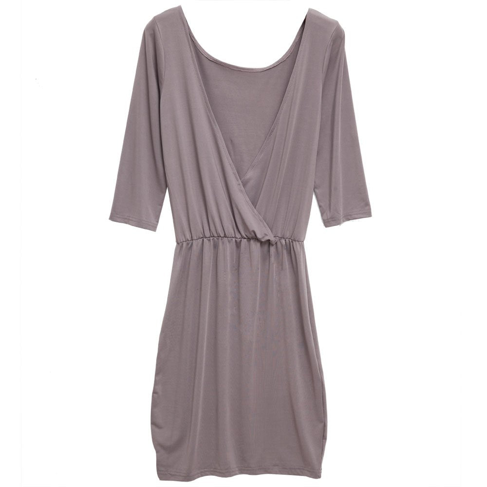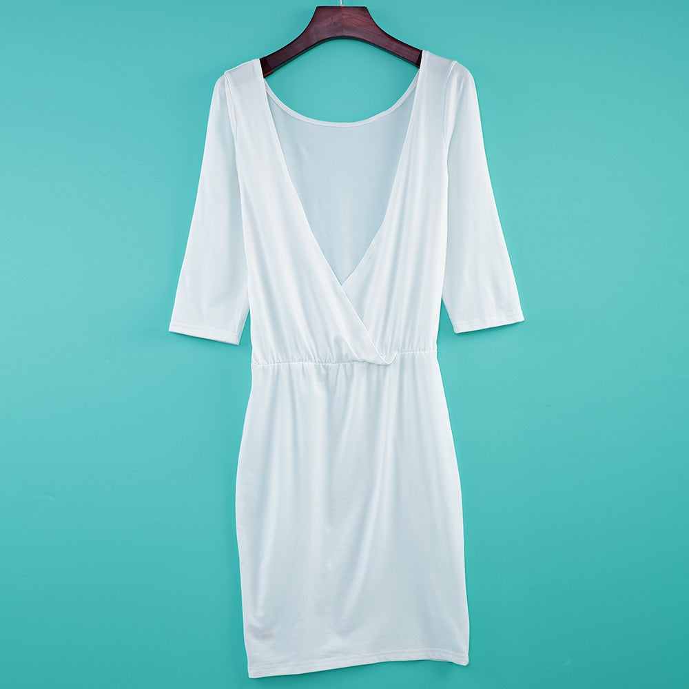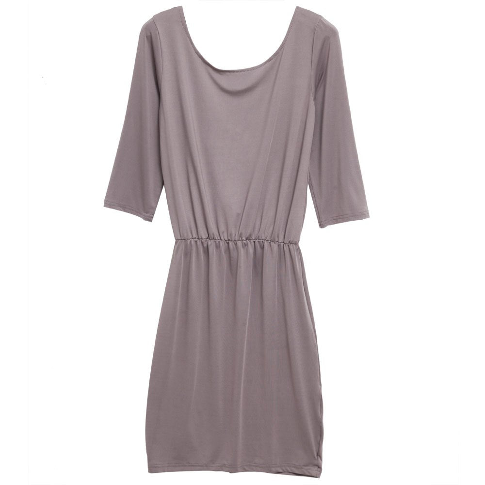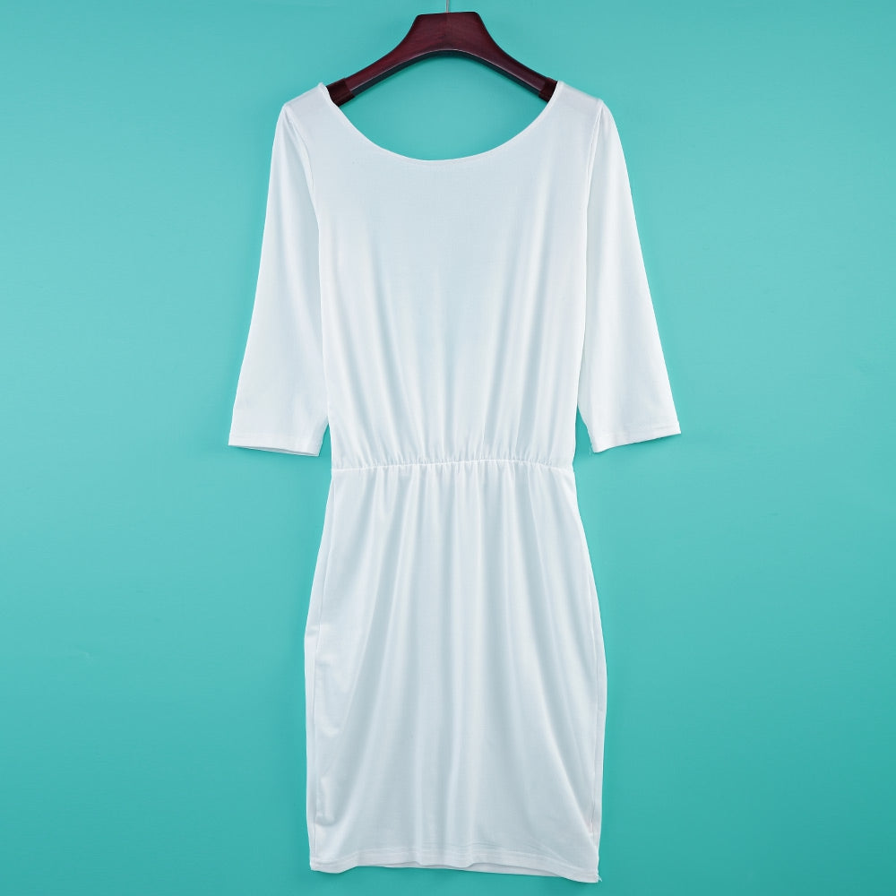 Chic Slash Collar Half Sleeve Backless Pure Color Bodycon Women's Dress