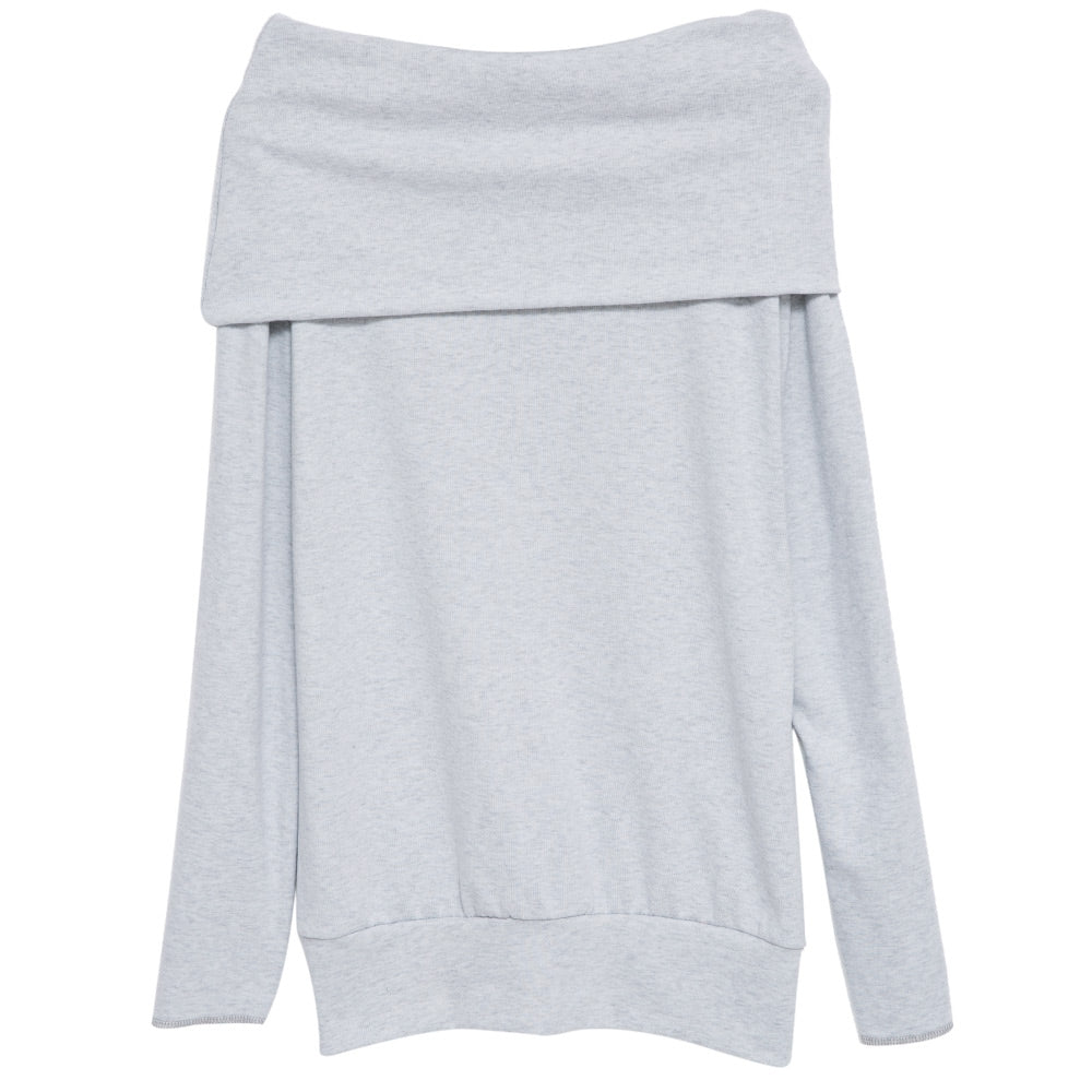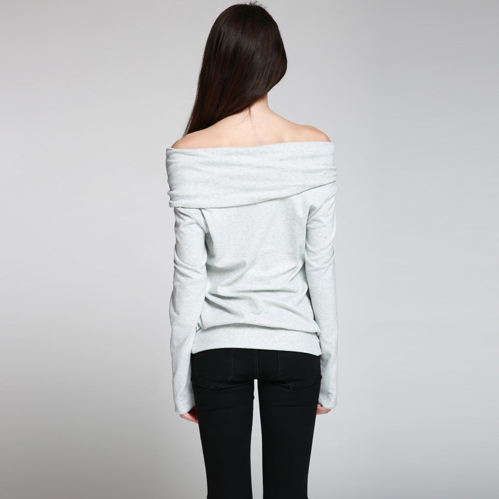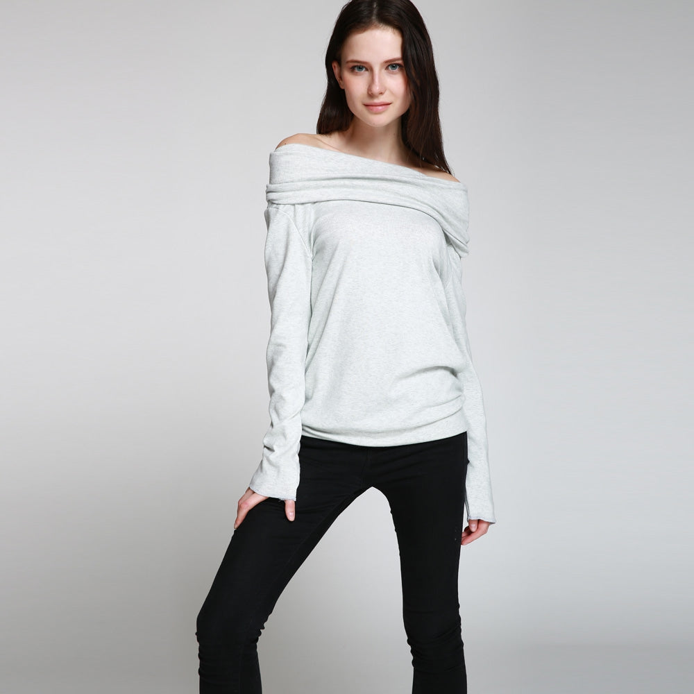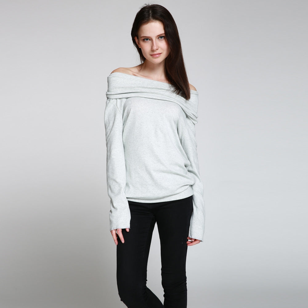 Stylish Slash Collar Long Sleeve Pure Color Knitted Pullover for Women