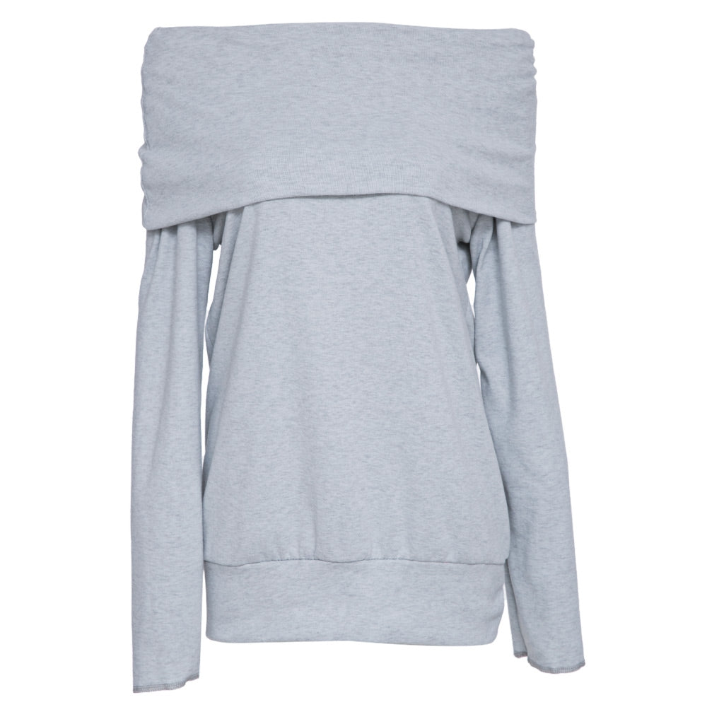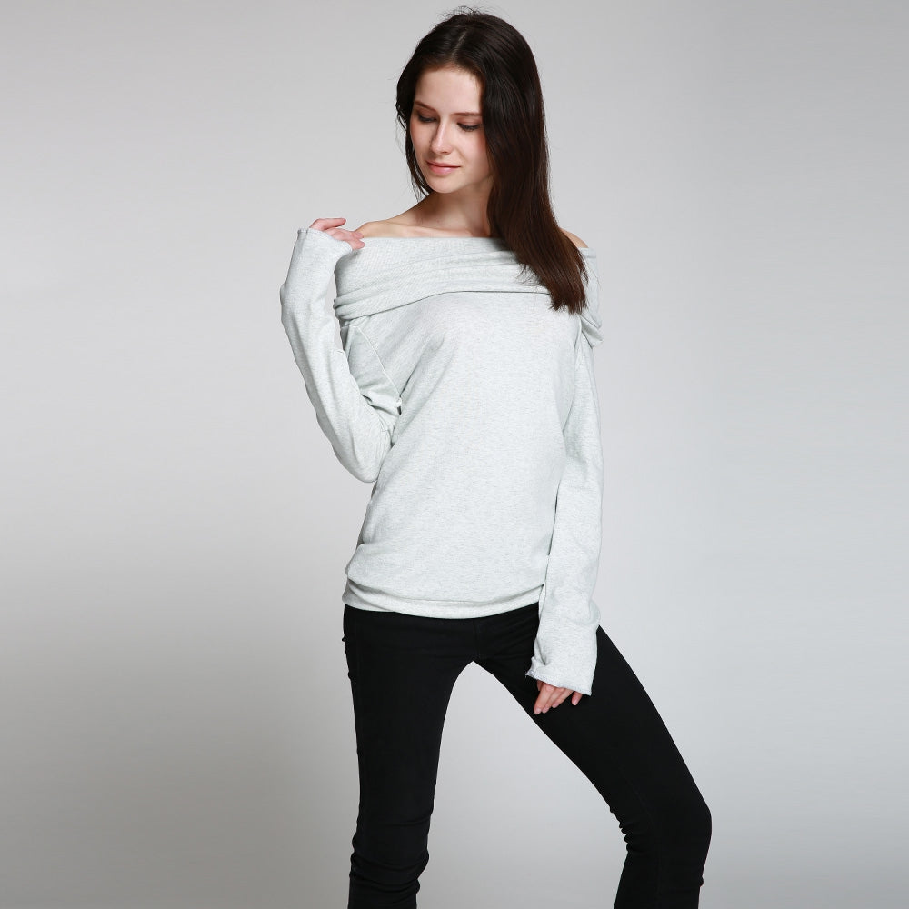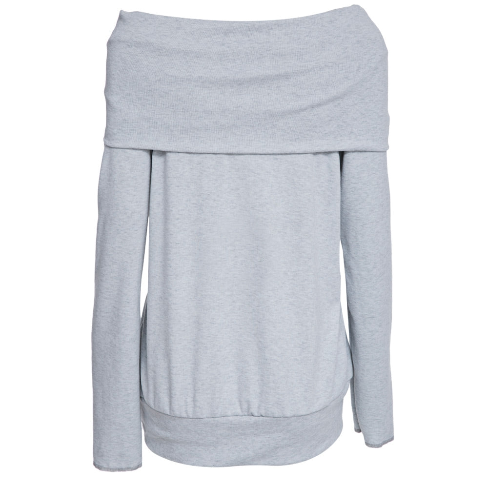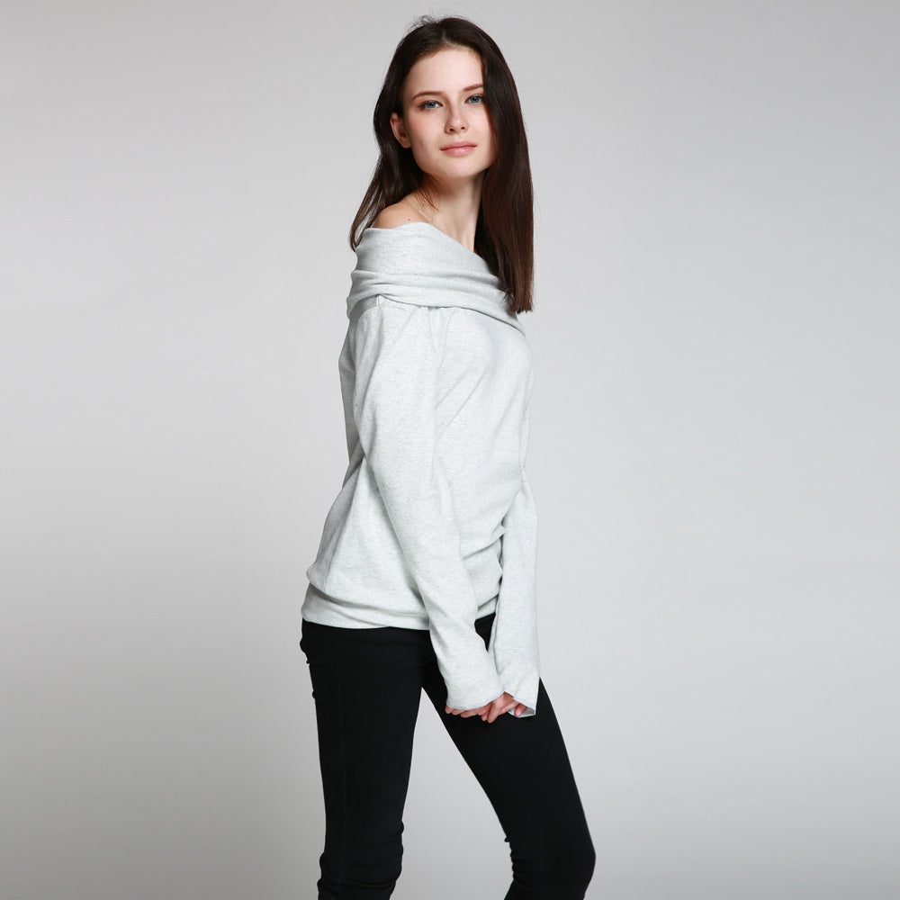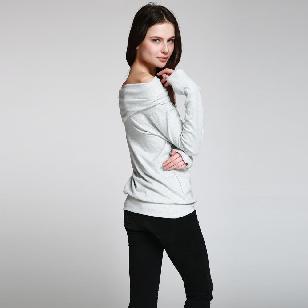 Stylish Slash Collar Long Sleeve Pure Color Knitted Pullover for Women