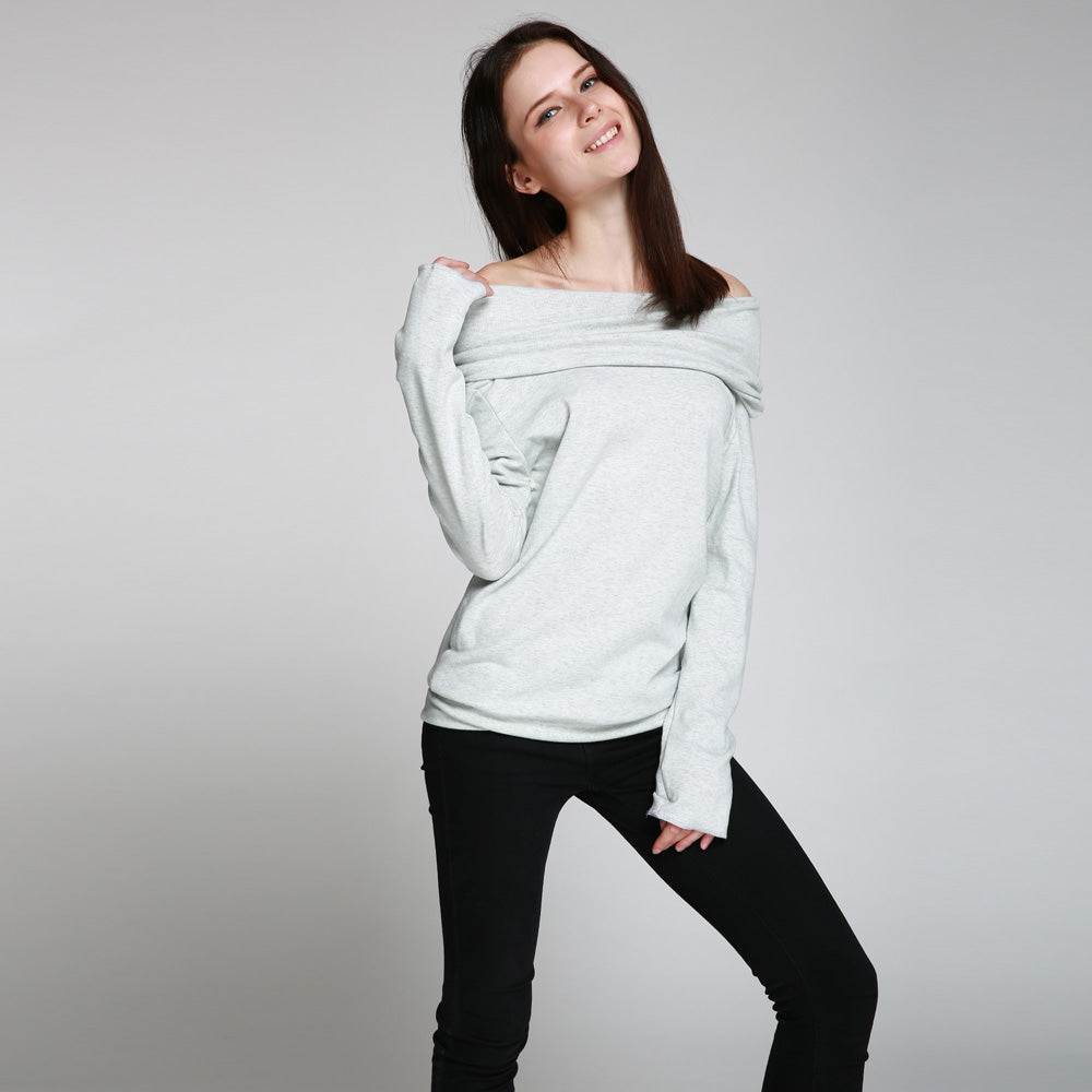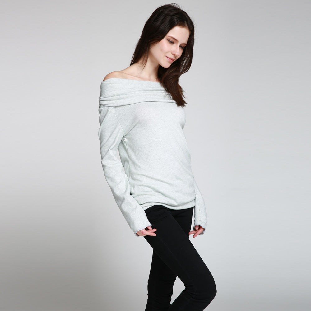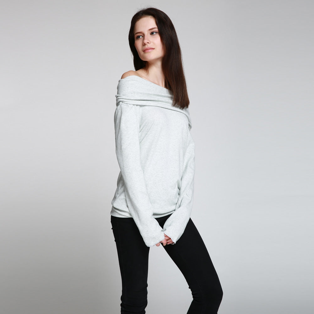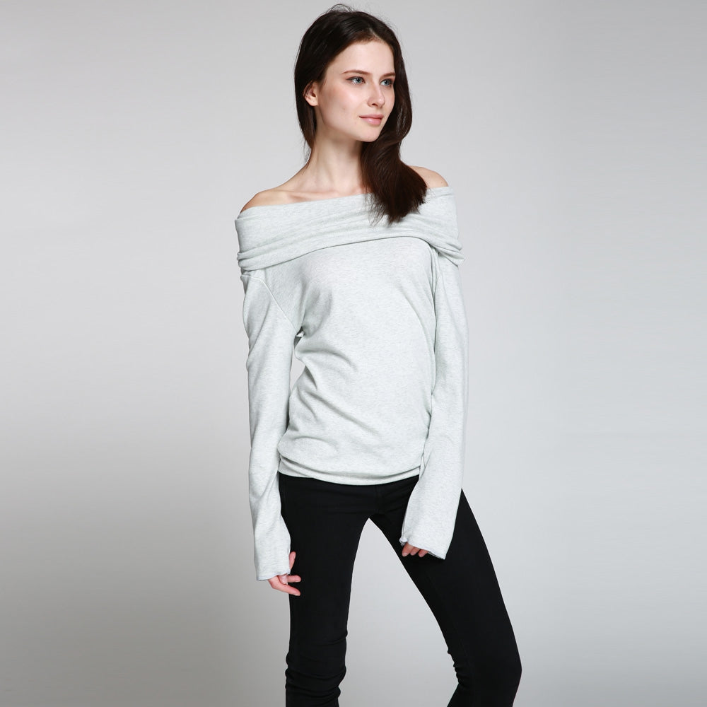 Stylish Slash Collar Long Sleeve Pure Color Knitted Pullover for Women
