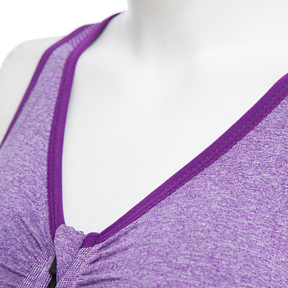 Active U-Neck Zippered Wireless Color Block Ladies Racerback Crop Top