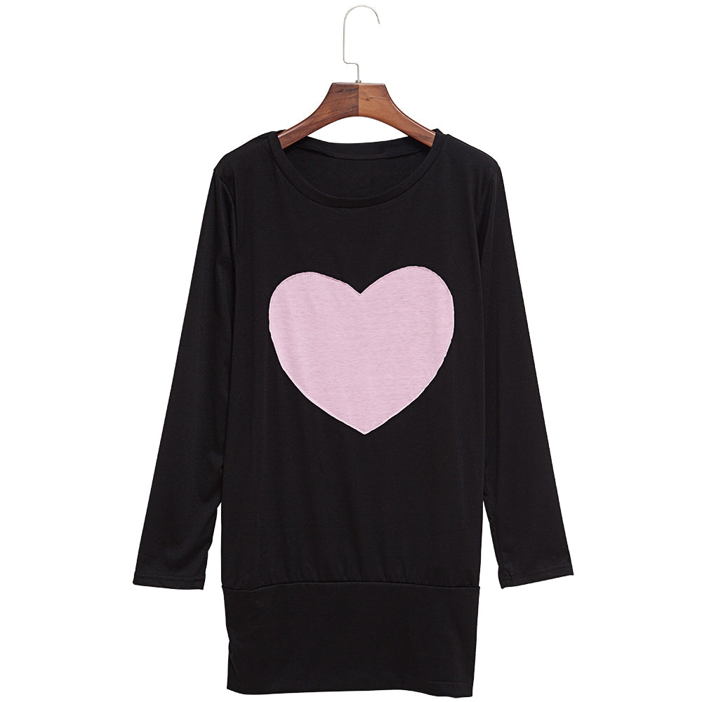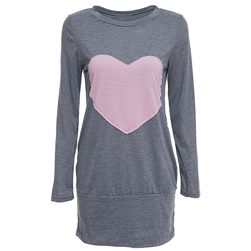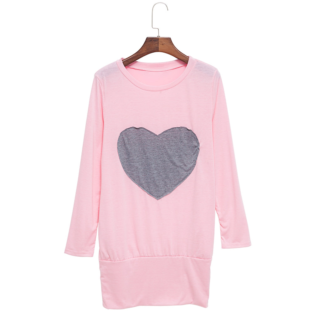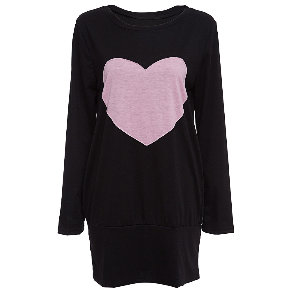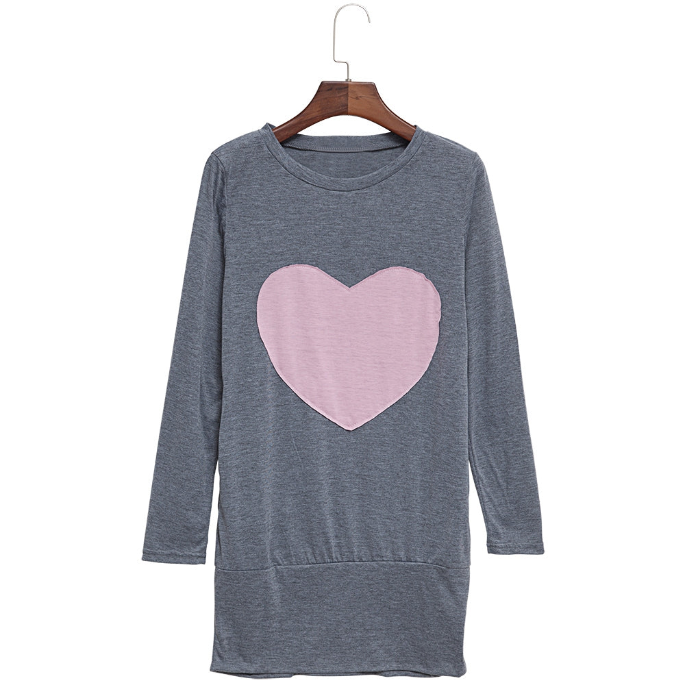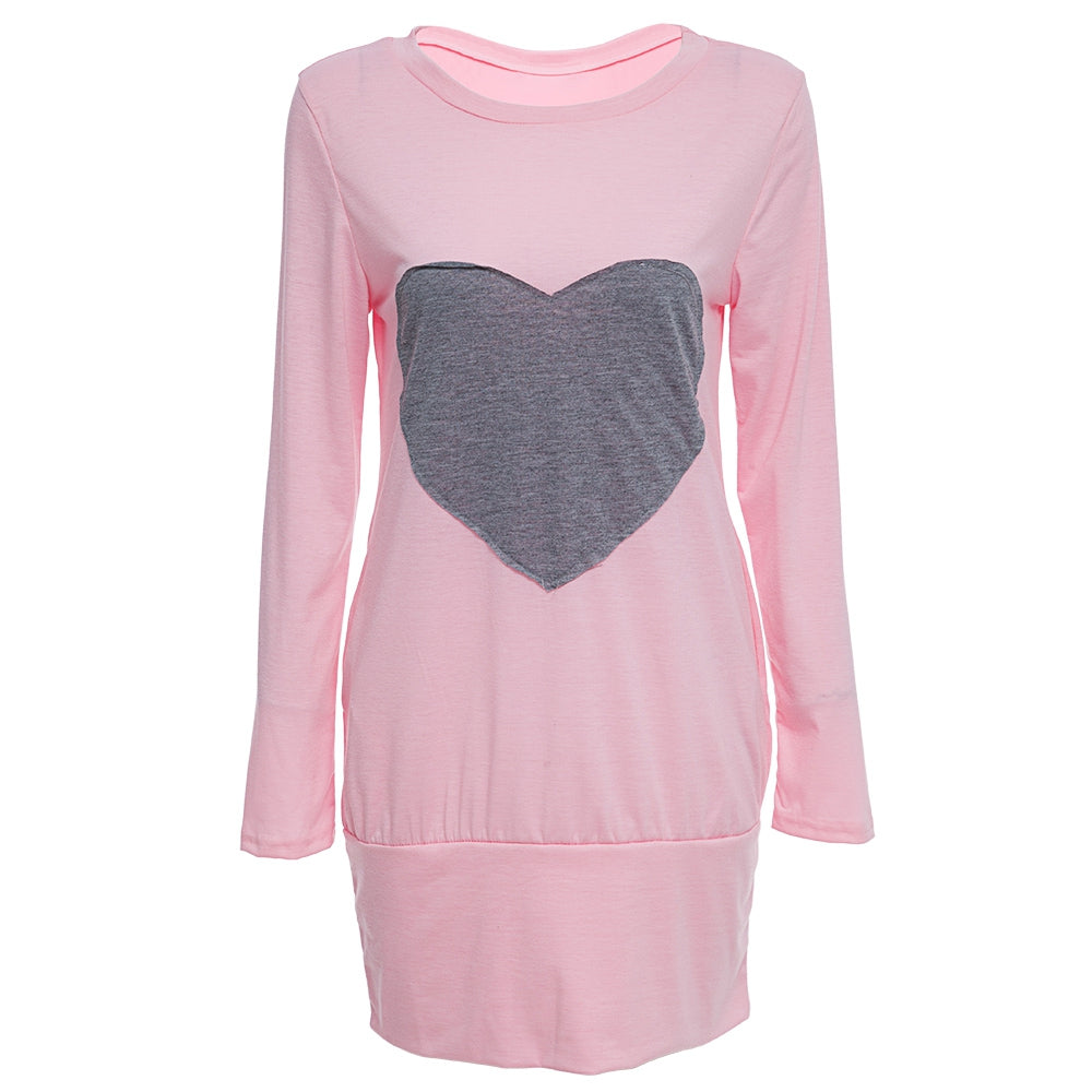 Chic Round Collar Long Sleeve Heart Print Bodycon Mini Dress for Women