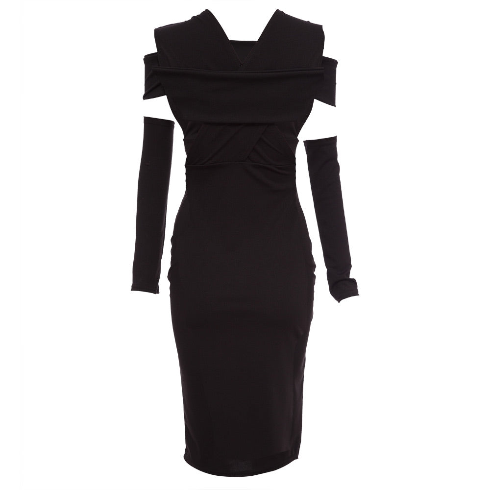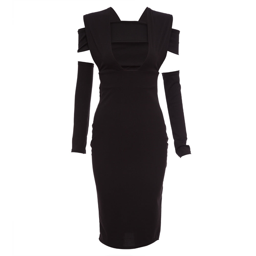 Sexy Deep V Hollow Out Pure Color Bodycon Midi Dress for Women