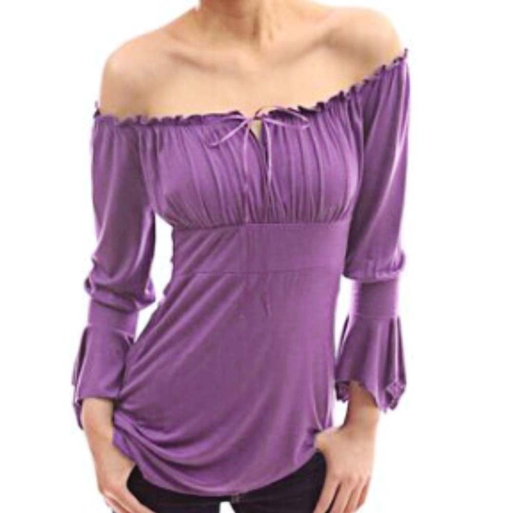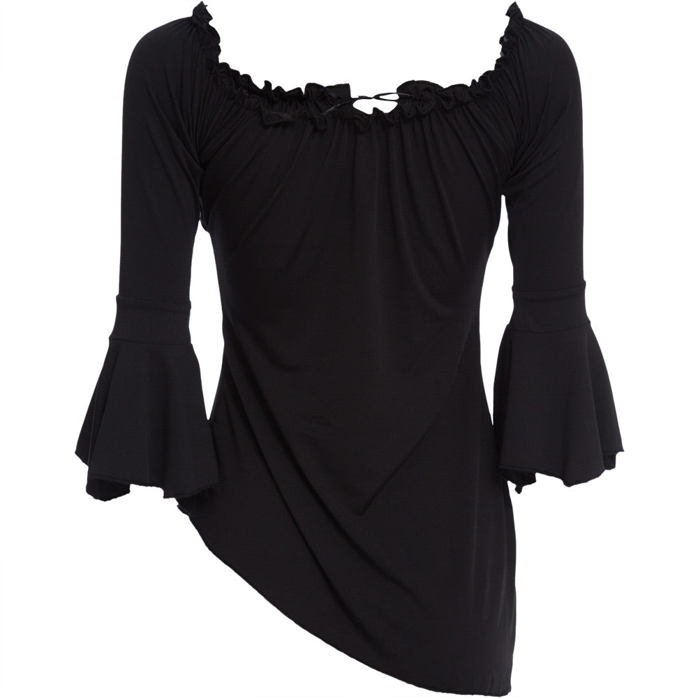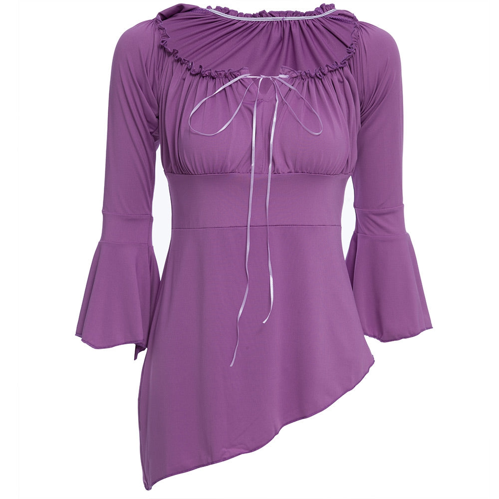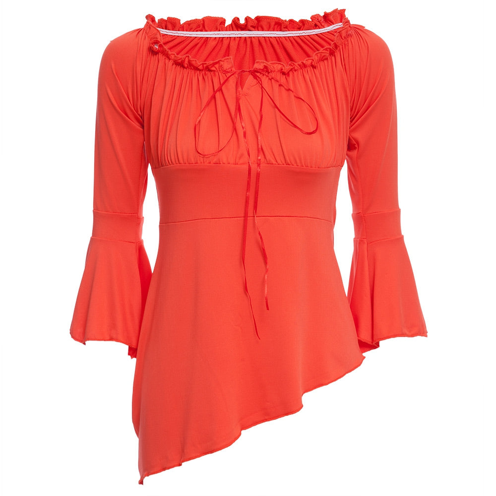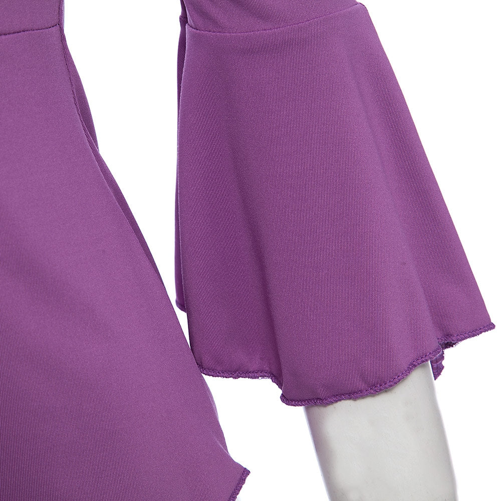 Sexy Off The Shoulder Flare Sleeve Pure Color Asymmetrical Blouse for Ladies