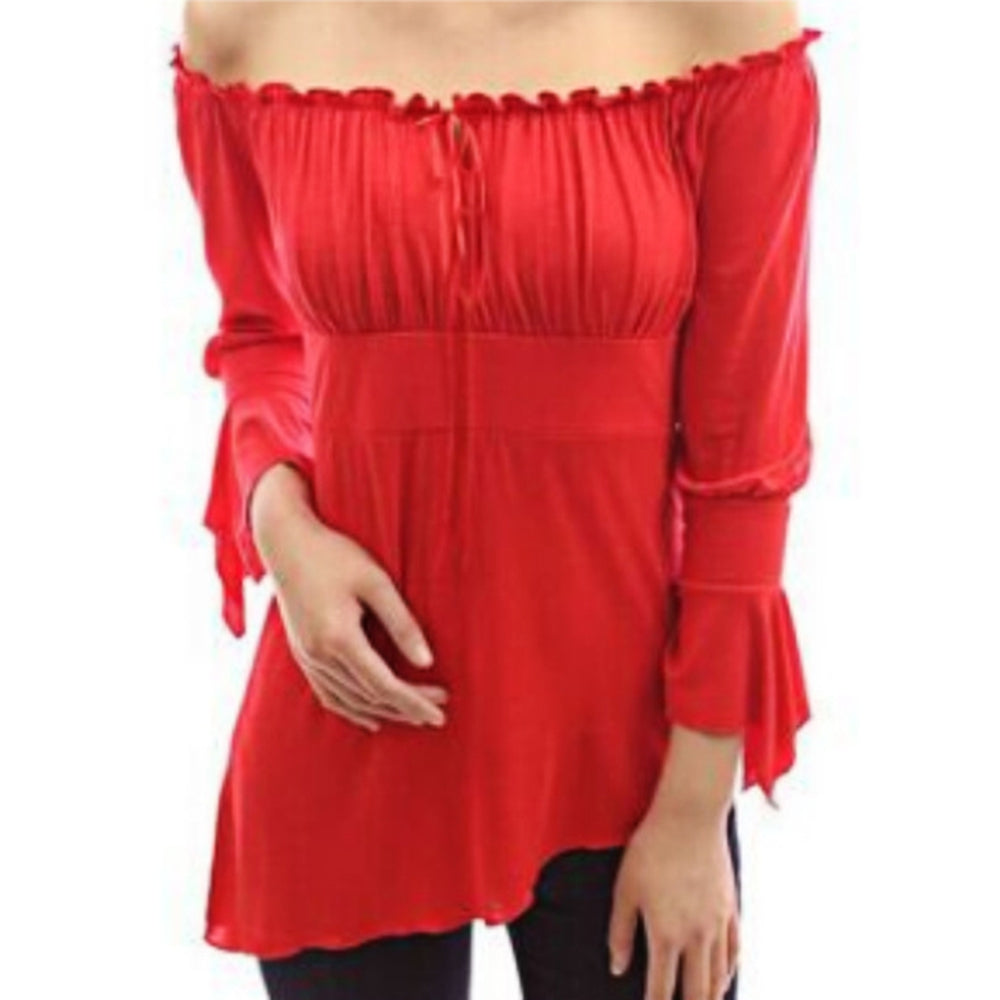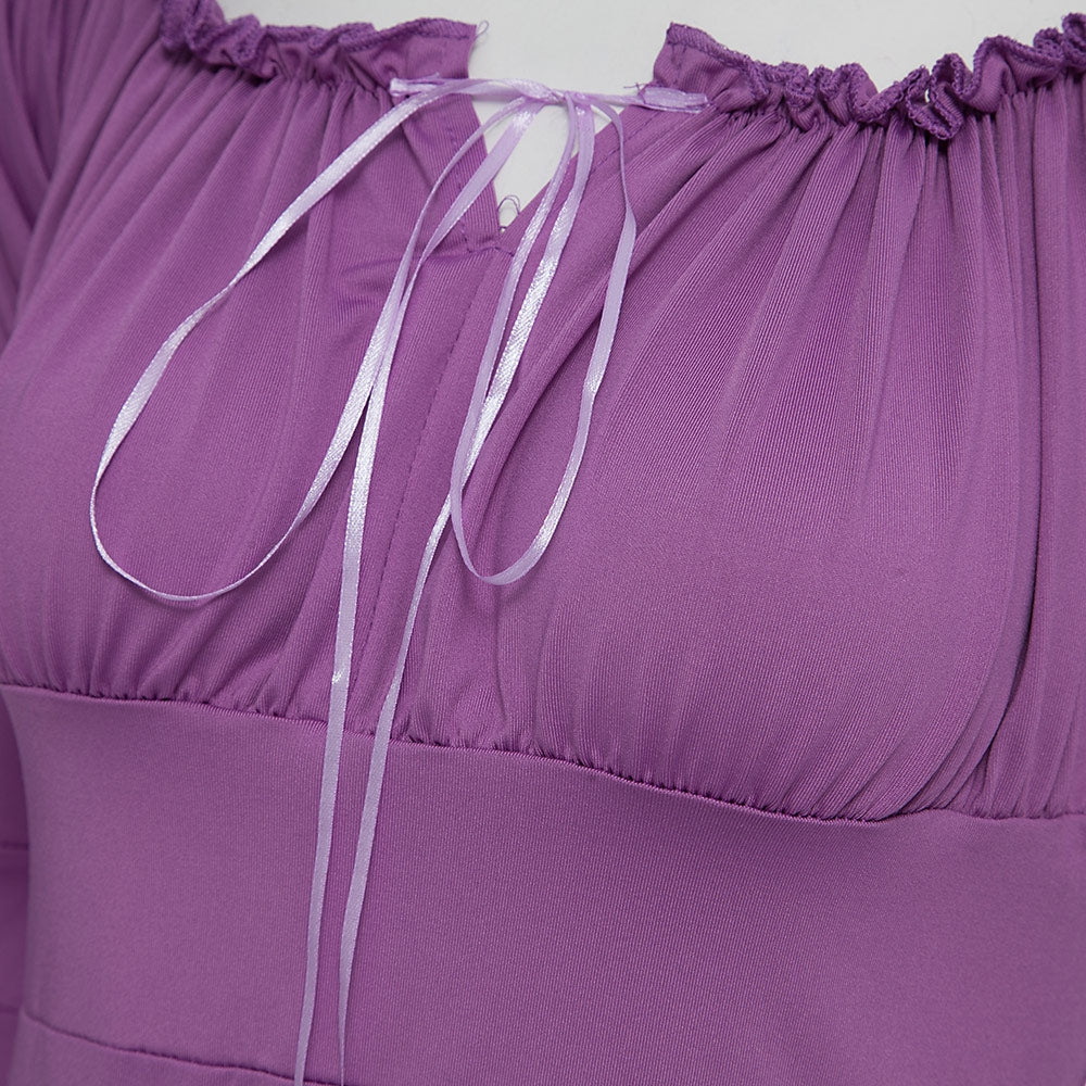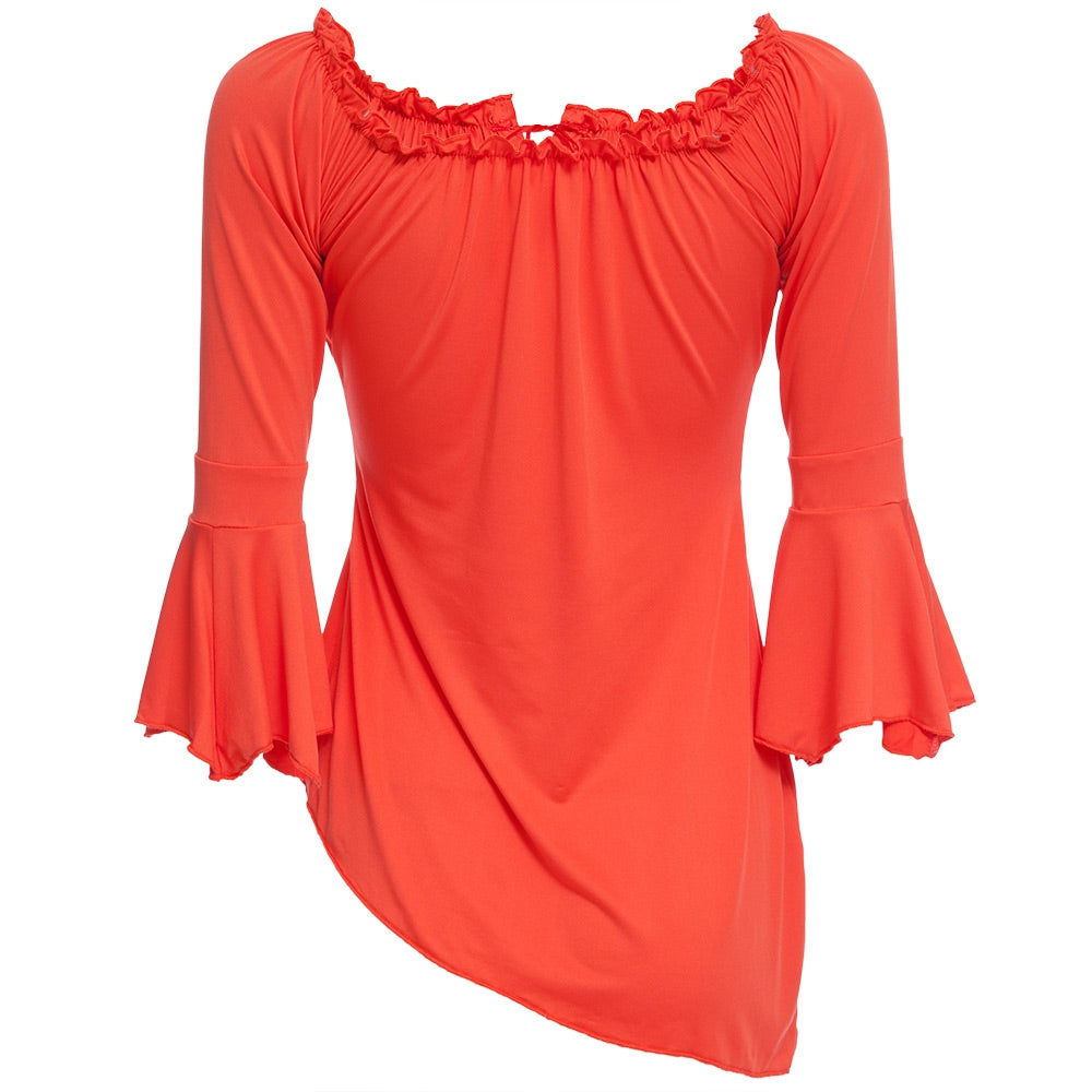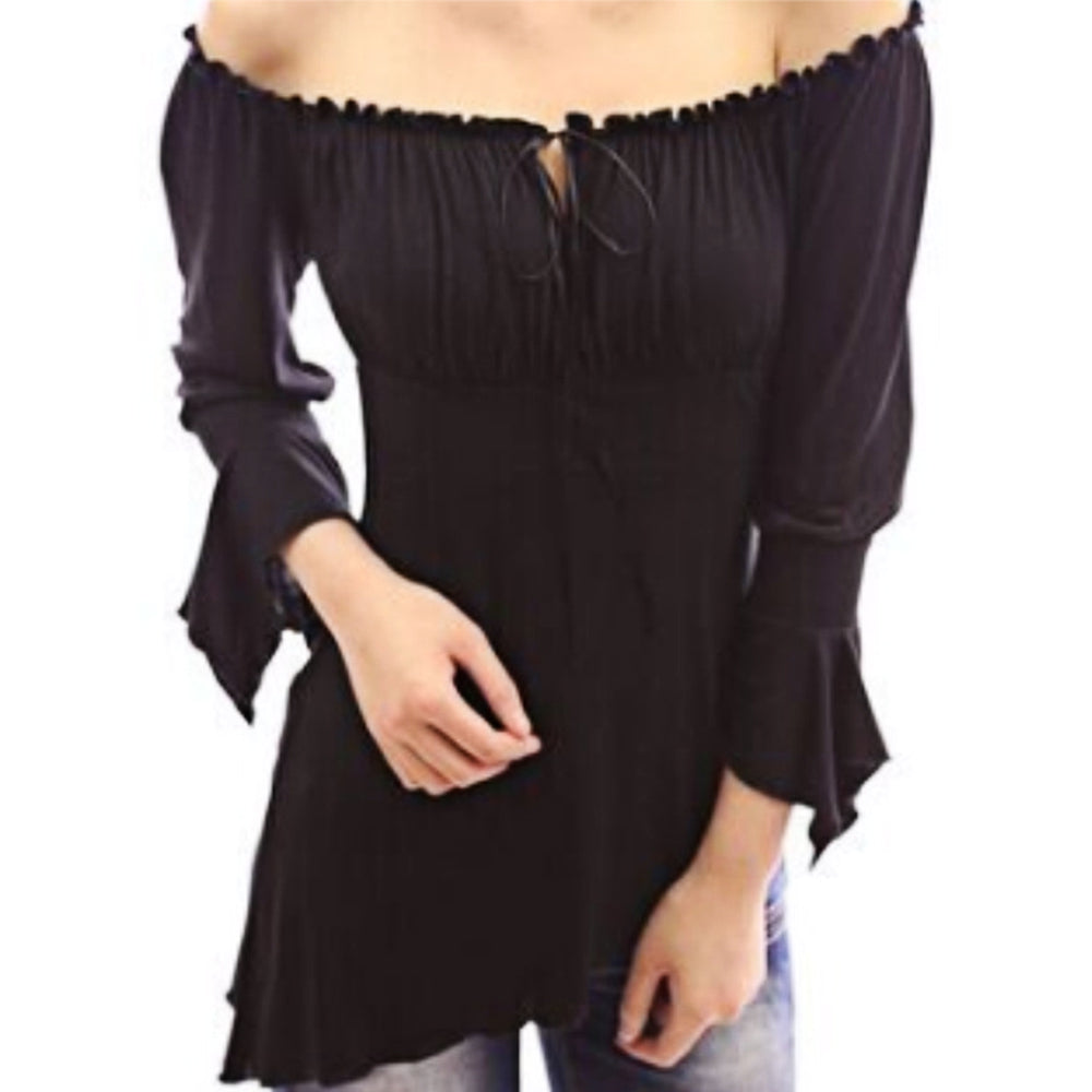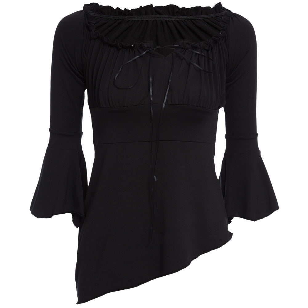 Sexy Off The Shoulder Flare Sleeve Pure Color Asymmetrical Blouse for Ladies