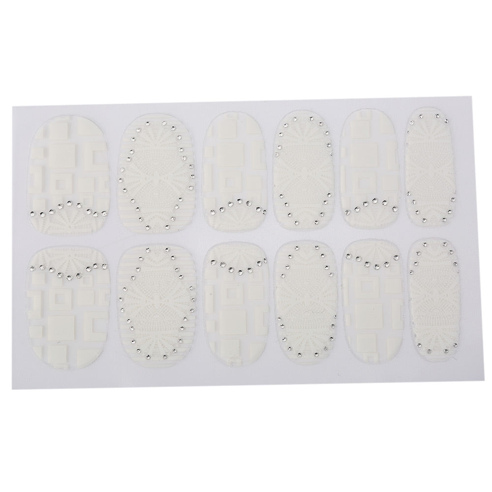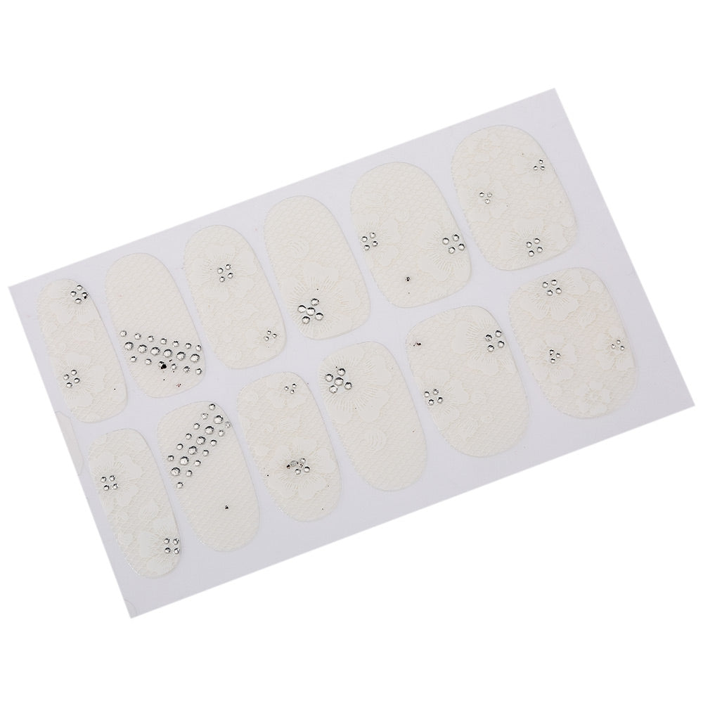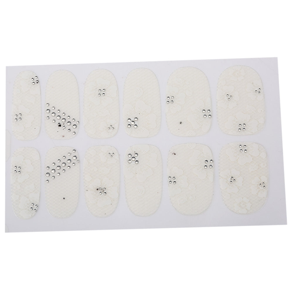Charming Diamond Decorations Fashionable White Lace Nail Stickers
