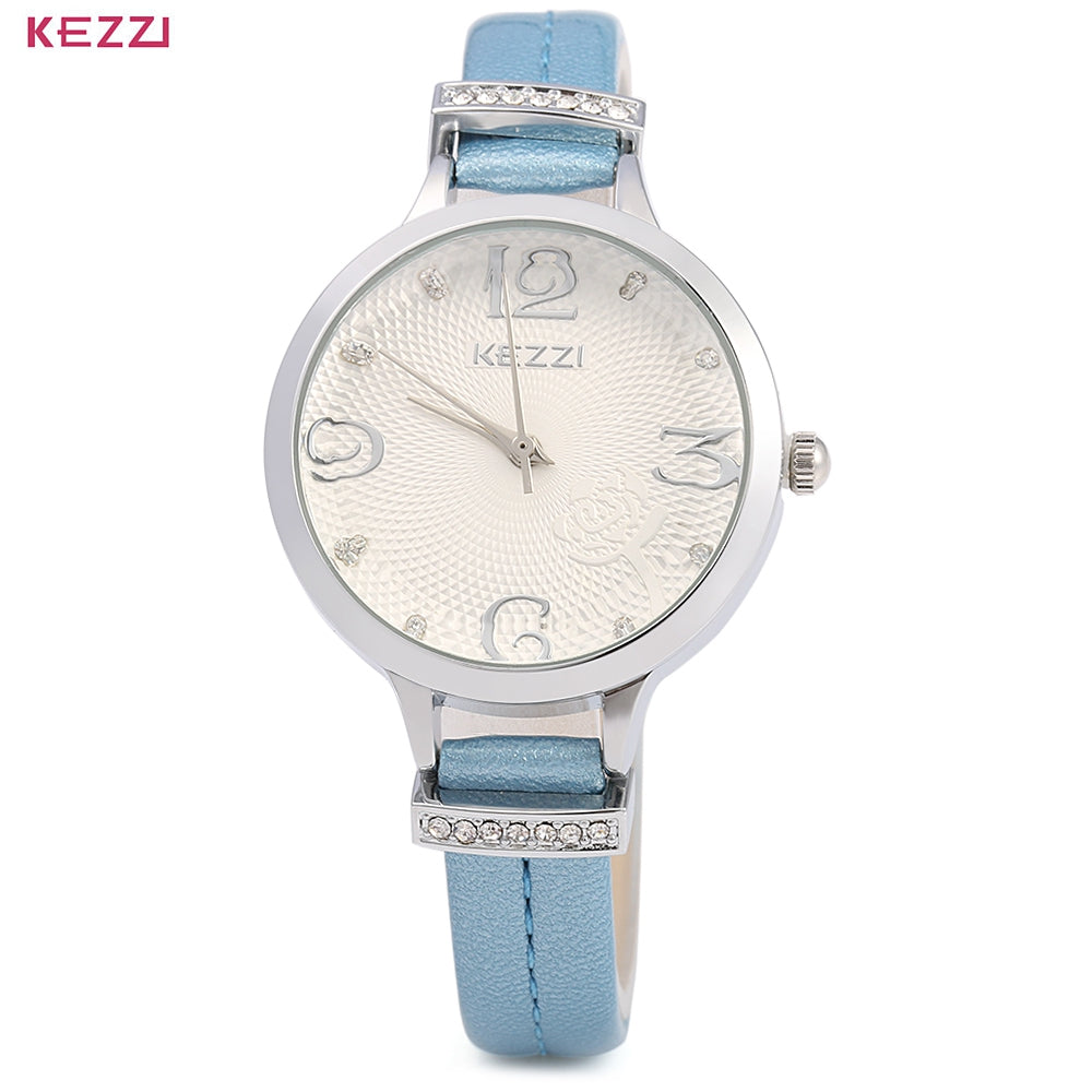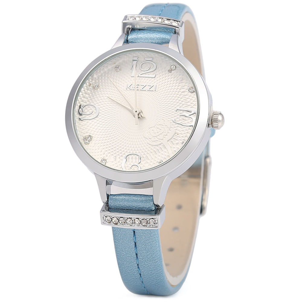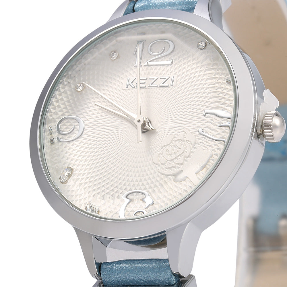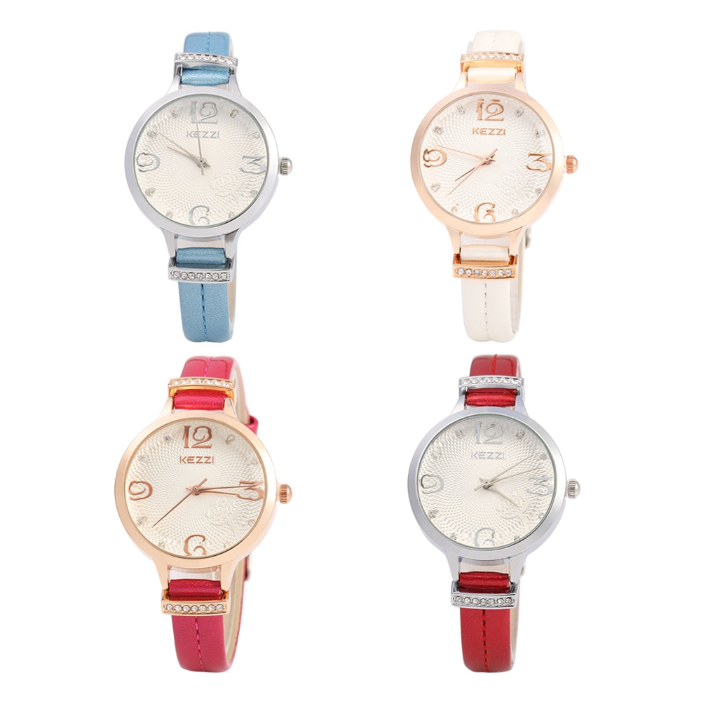 KEZZI 1263 Quartz Watch Analog Wristwatch Leather Band for Ladies