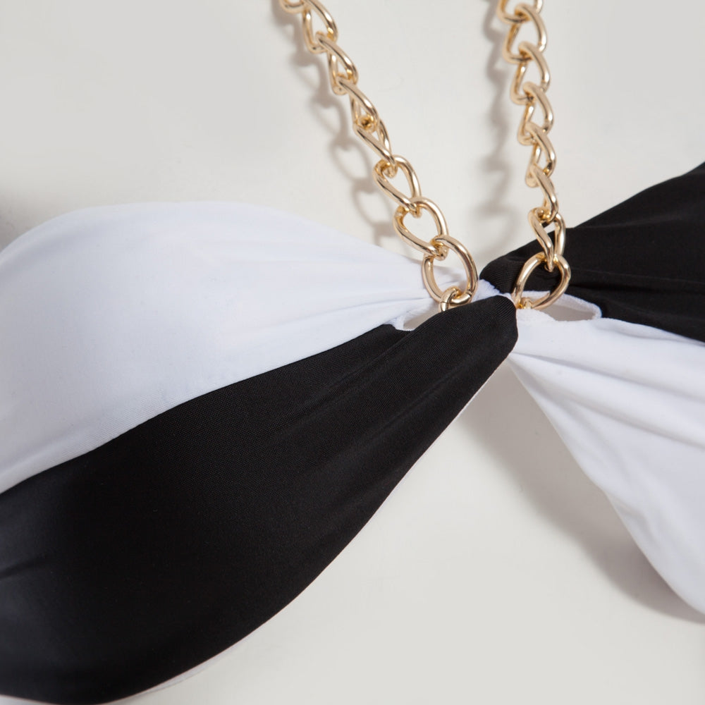 - Charming and sexy style: Black and white color, chain strap, and seductive design.