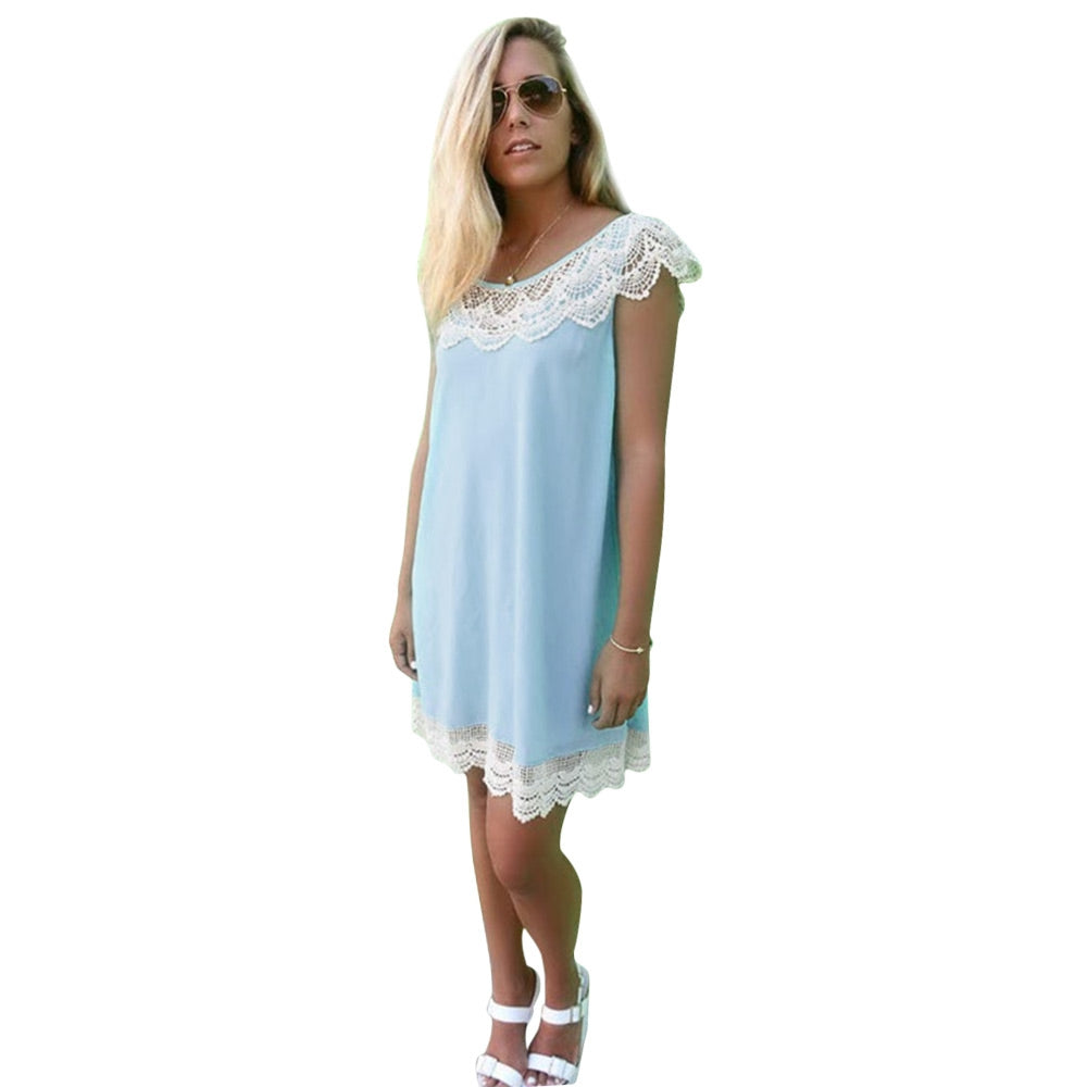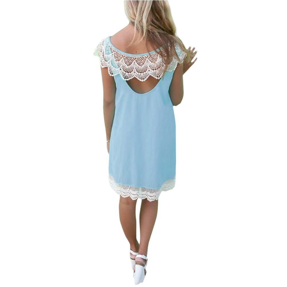 Sweet Scoop Collar Sleeveless Lacework Cut Out Mini Dress for Women
