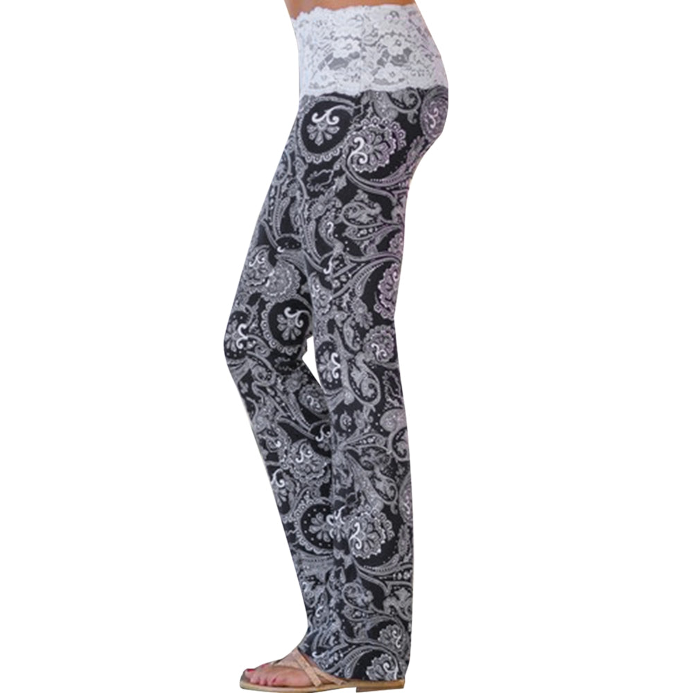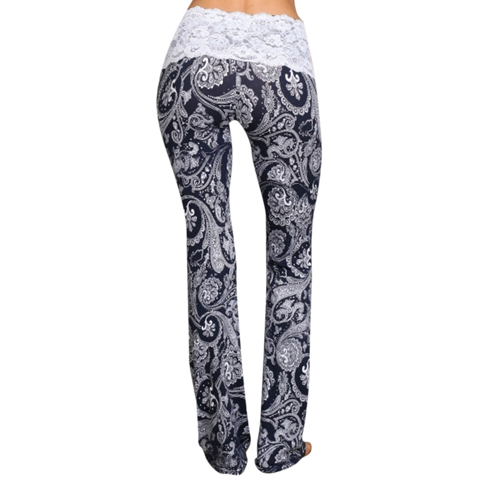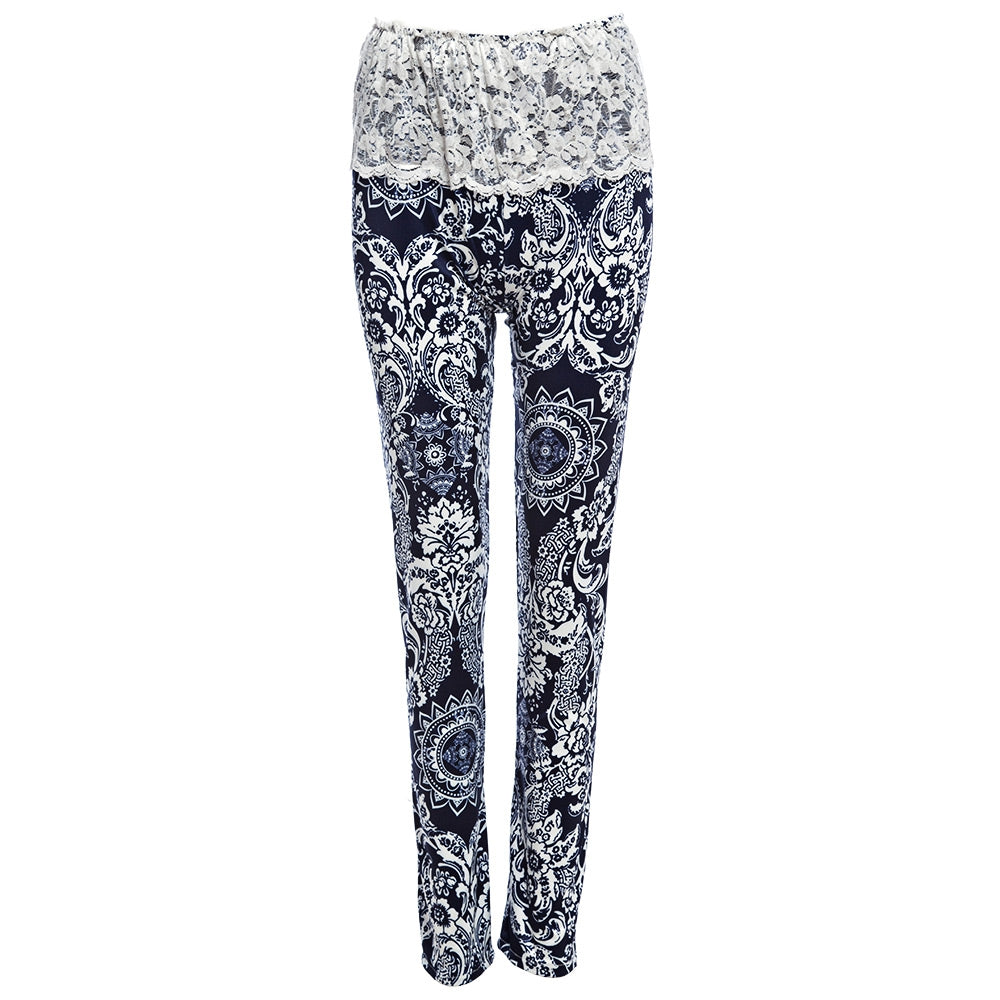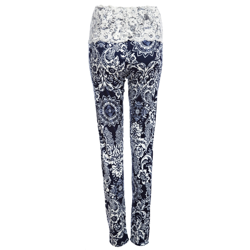 Trendy High Waist Lace Spliced Tribal Print Elastic Pants for Women