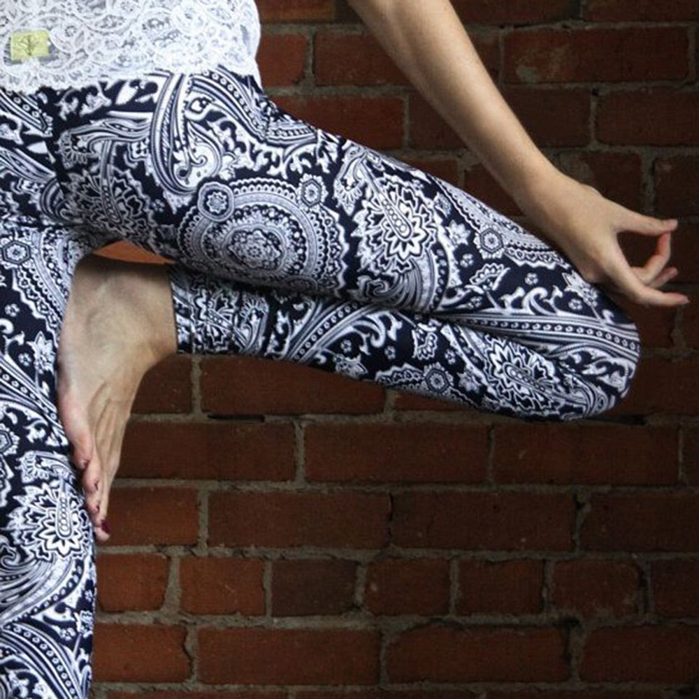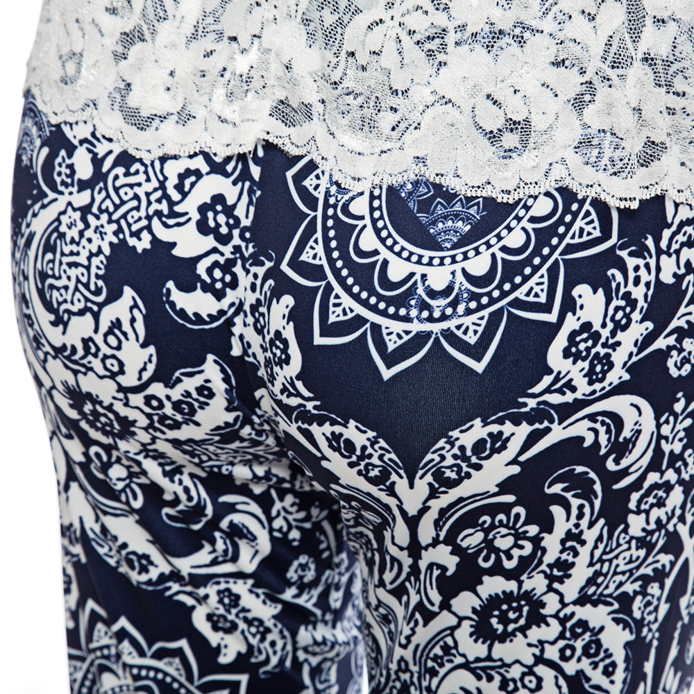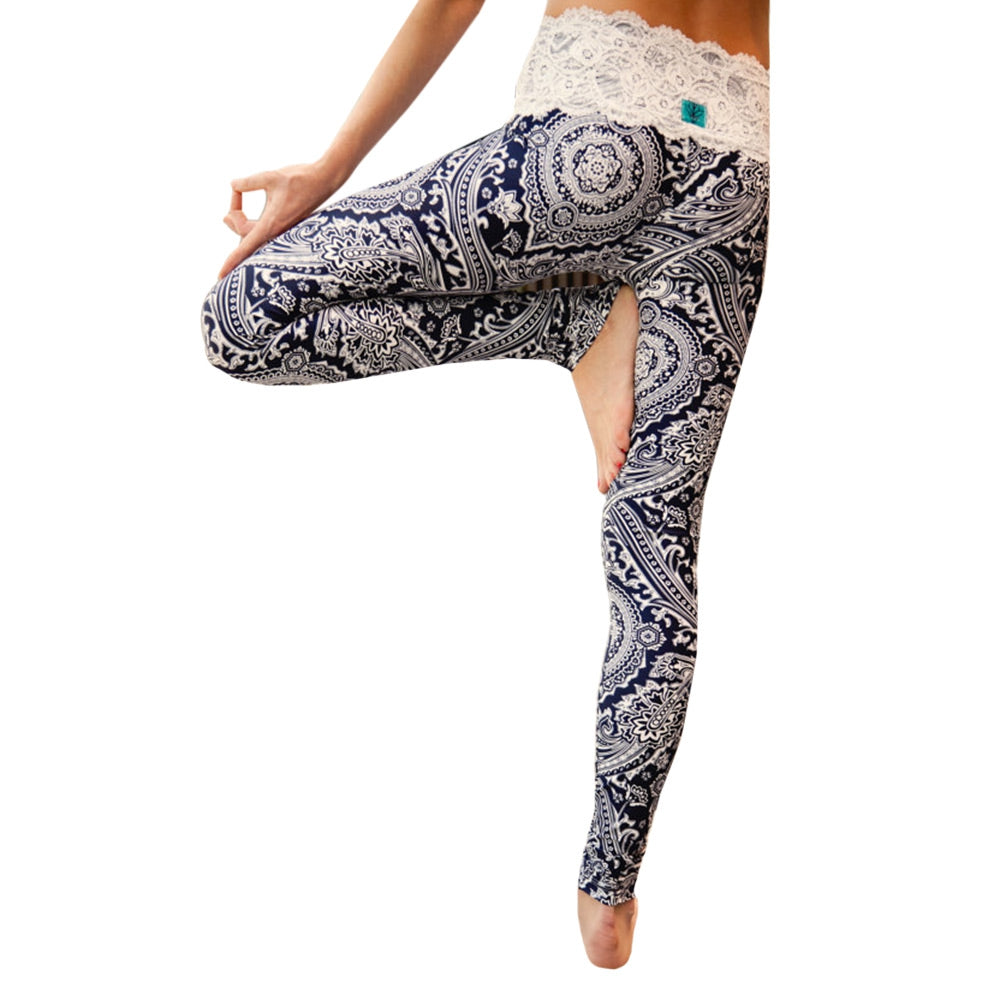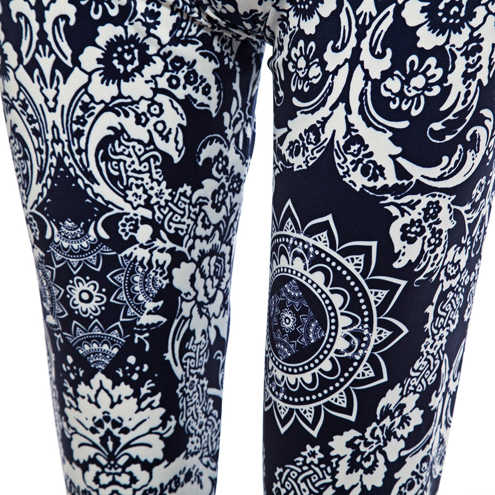 Trendy High Waist Lace Spliced Tribal Print Elastic Pants for Women