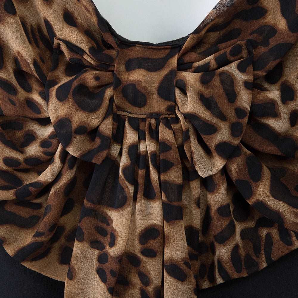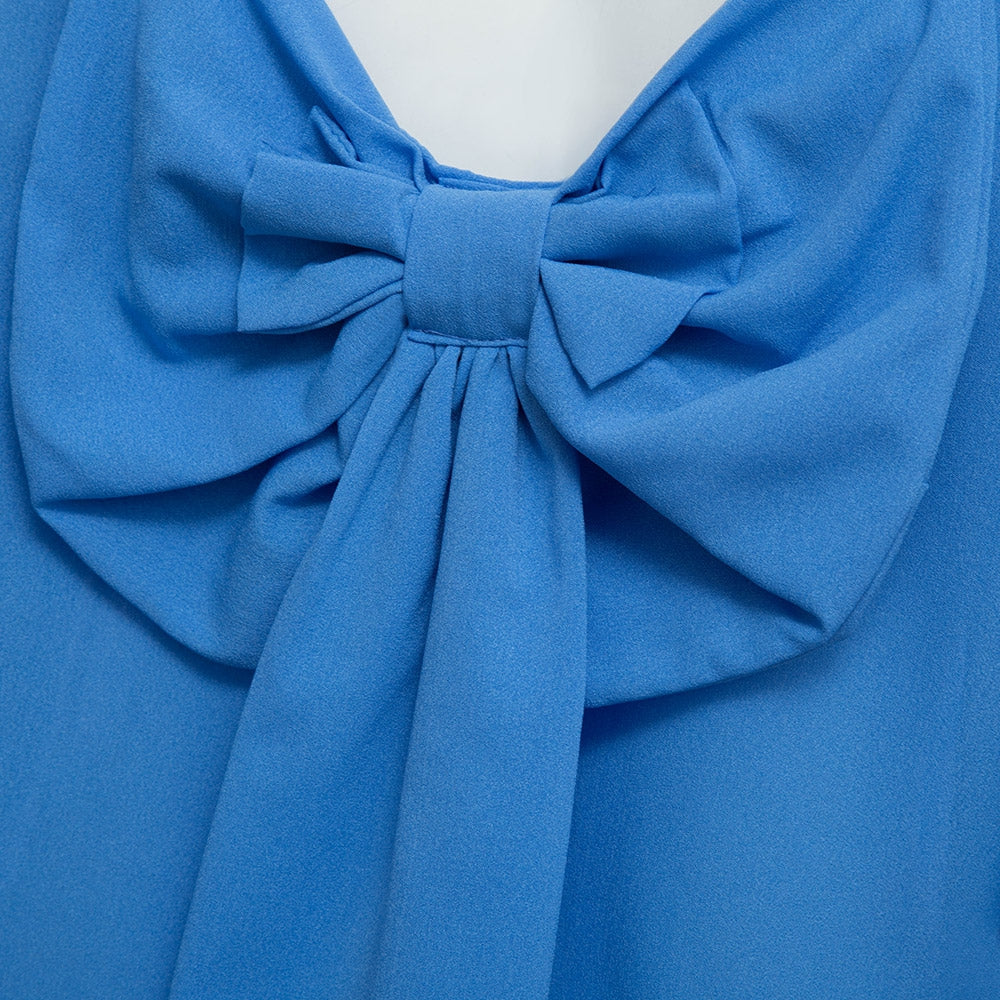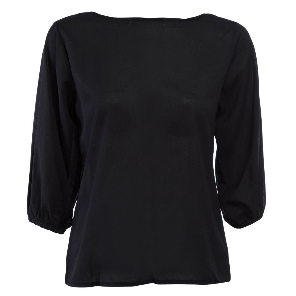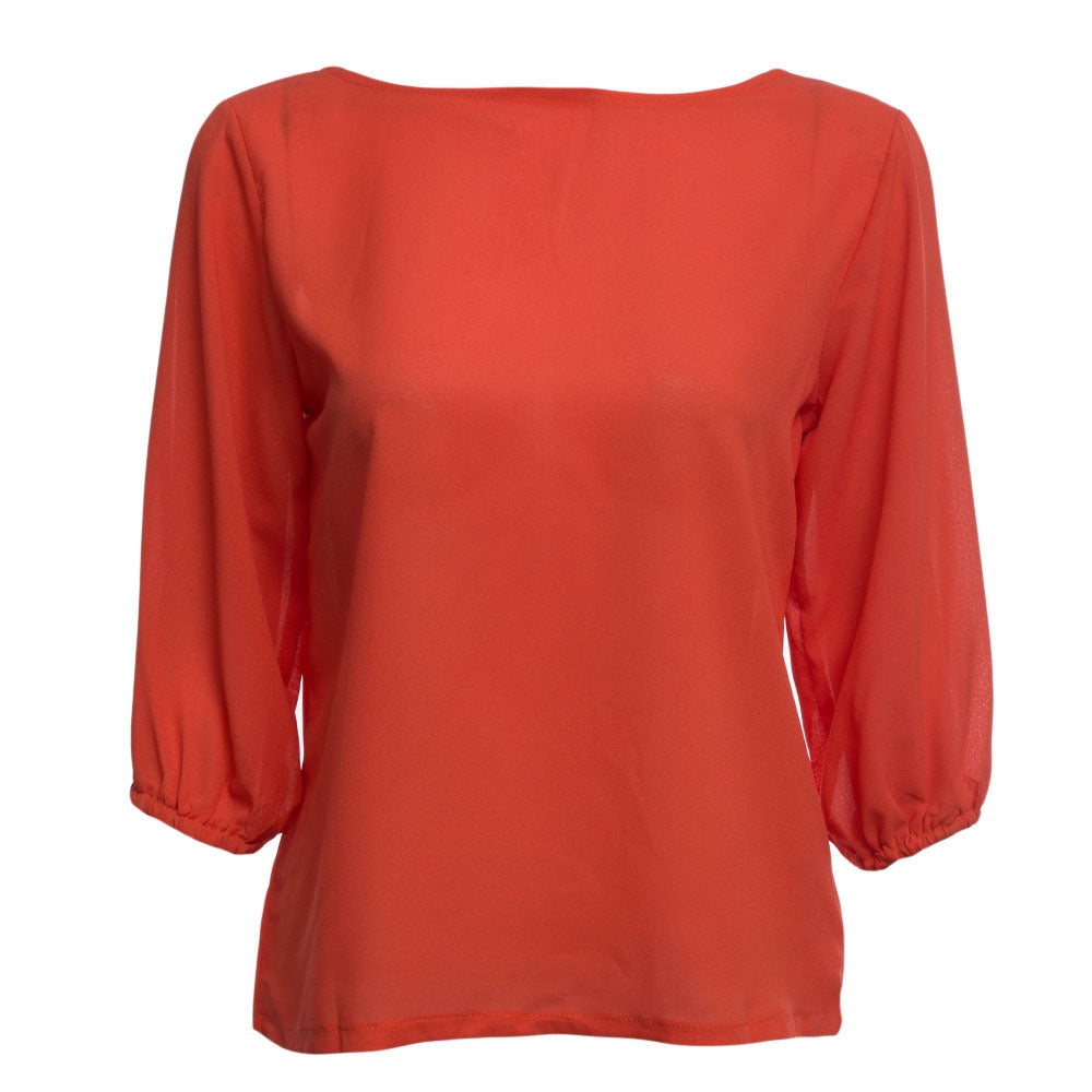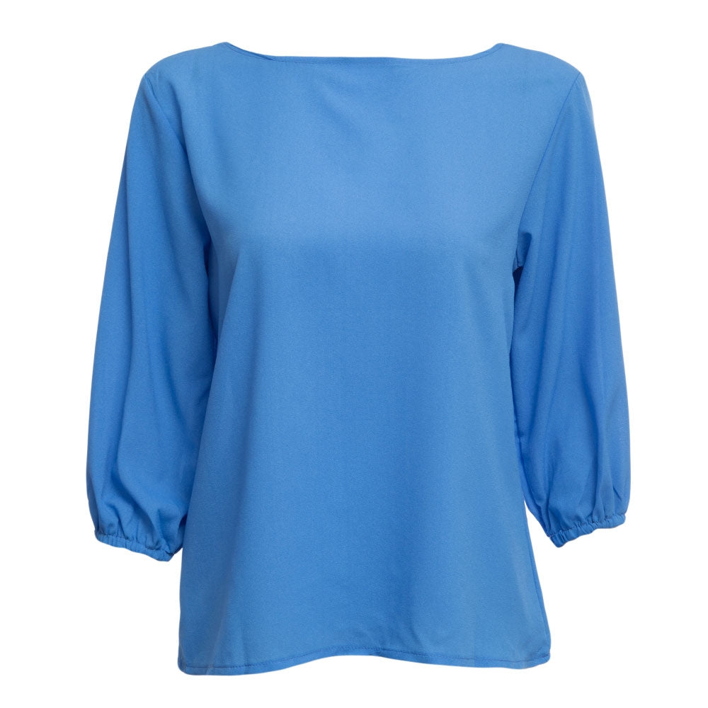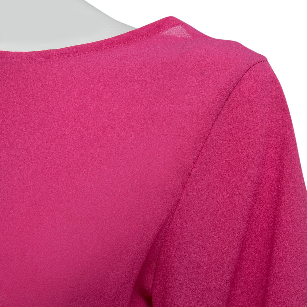 Stylish Round Collar Three Quarter Sleeve Back Bowtie Patchwork Loose Pure Color Blouse for Women