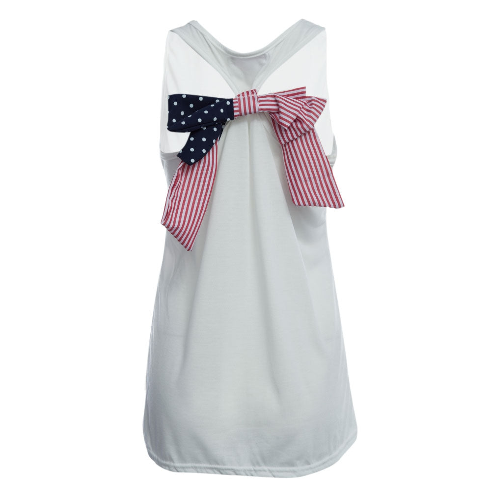 Casual Round Collar Sleeveless Print Back Bowknot Design Tank Top