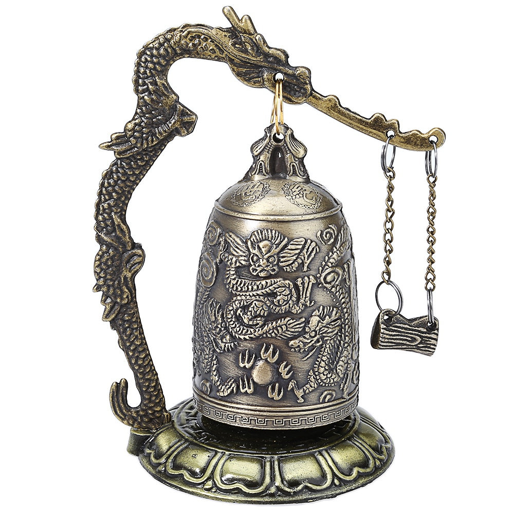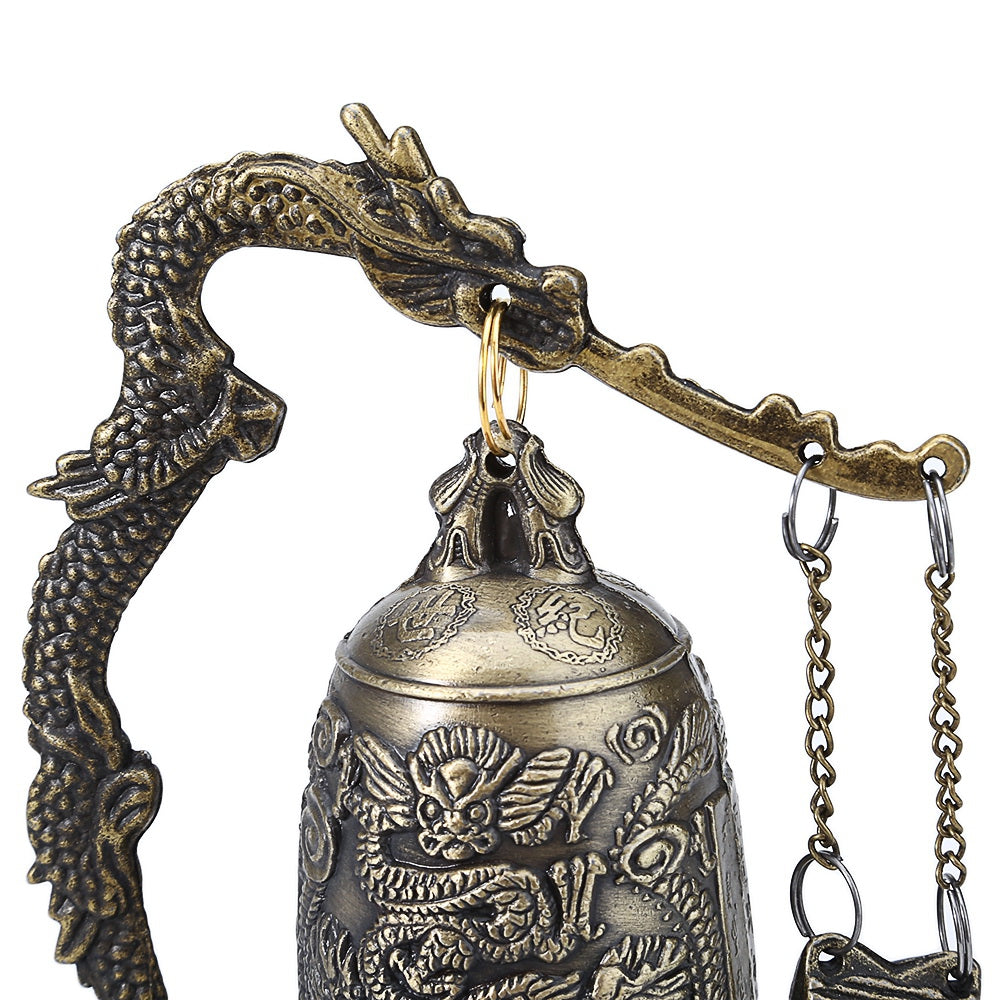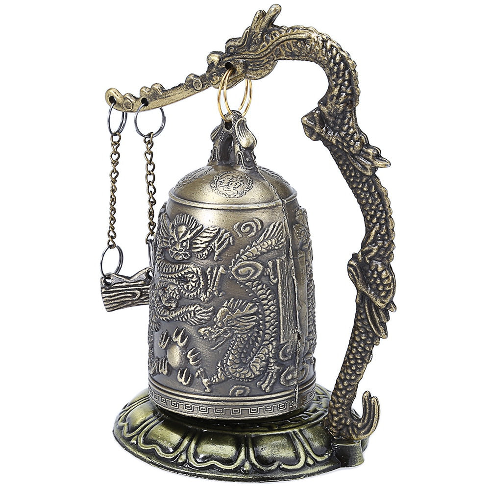 Zinc Alloy Vintage Style Bronze Lock Dragon Carved Buddhist Bell Chinese Geomantic Artware Exquisite Home Decor