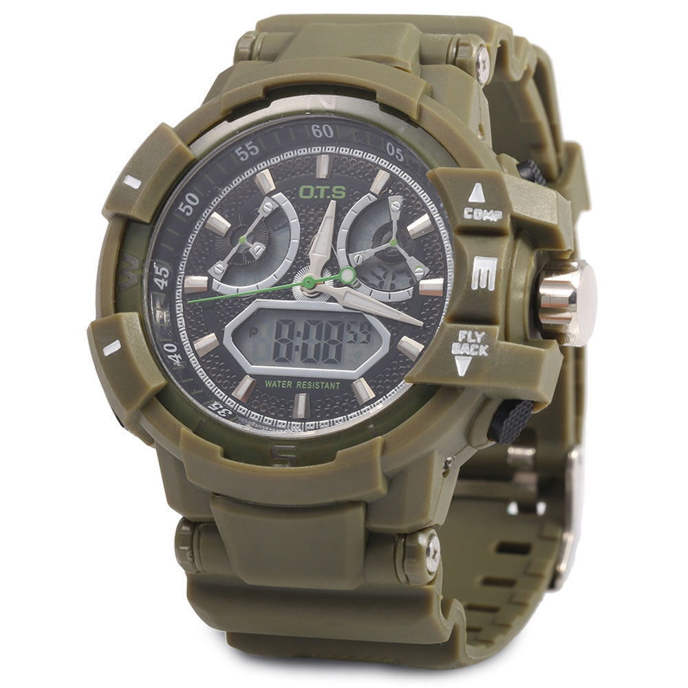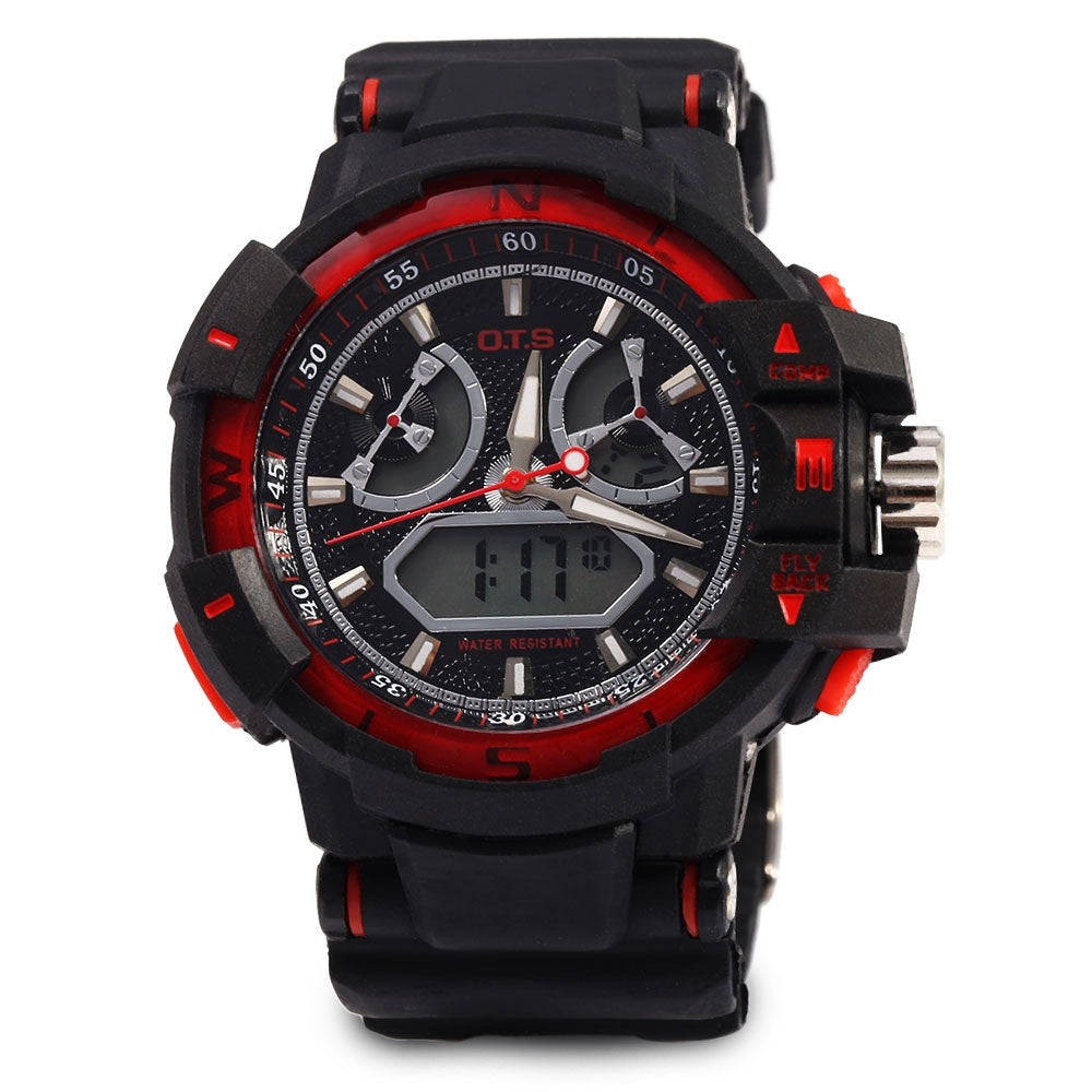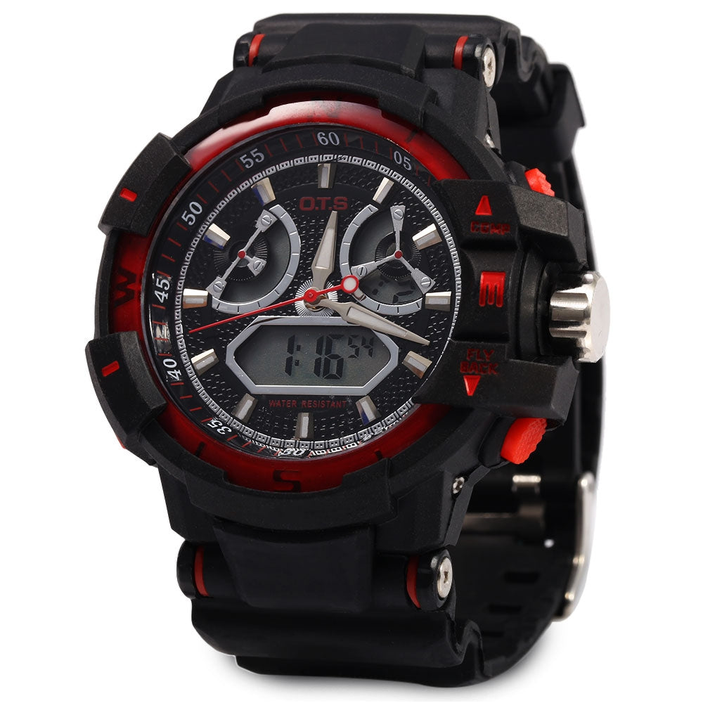 OTS 8061 Men LED Digital Luminous Analog Quartz Watch Outdoor Sport Dual Movt Wristwatch