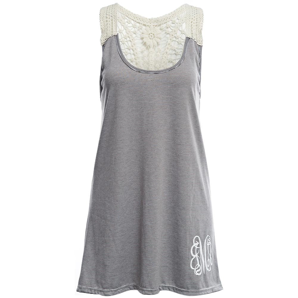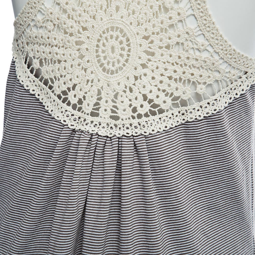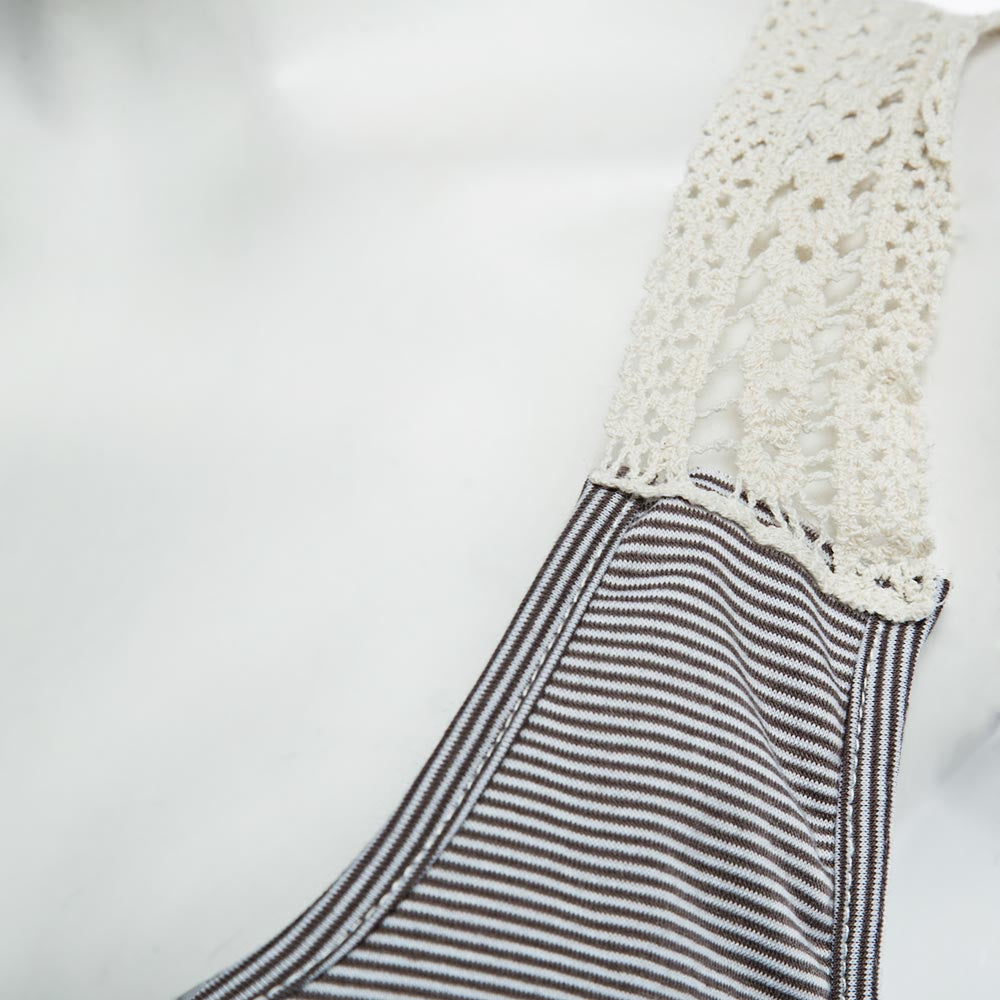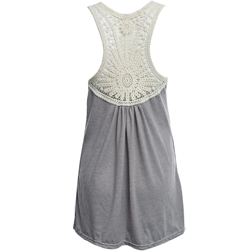 Casual Round Collar Sleeveless Lace Patchwork Hollow Out Stripe Print Vest for Women