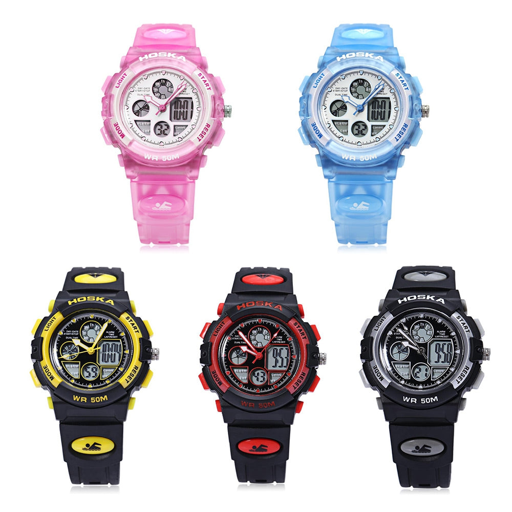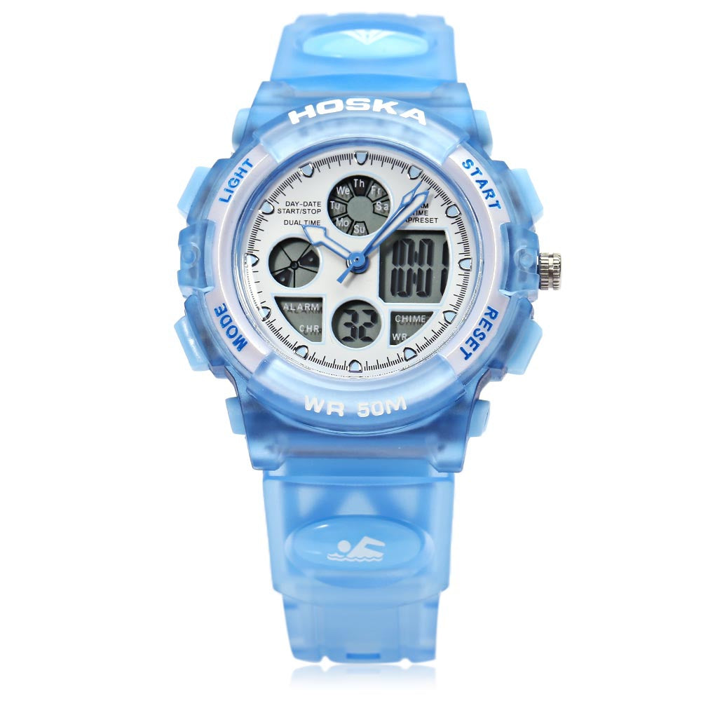 HOSKA H003S Digital Quartz Children Sport Watch Chronograph Calendar Alarm Backlight 5ATM Wristwatch