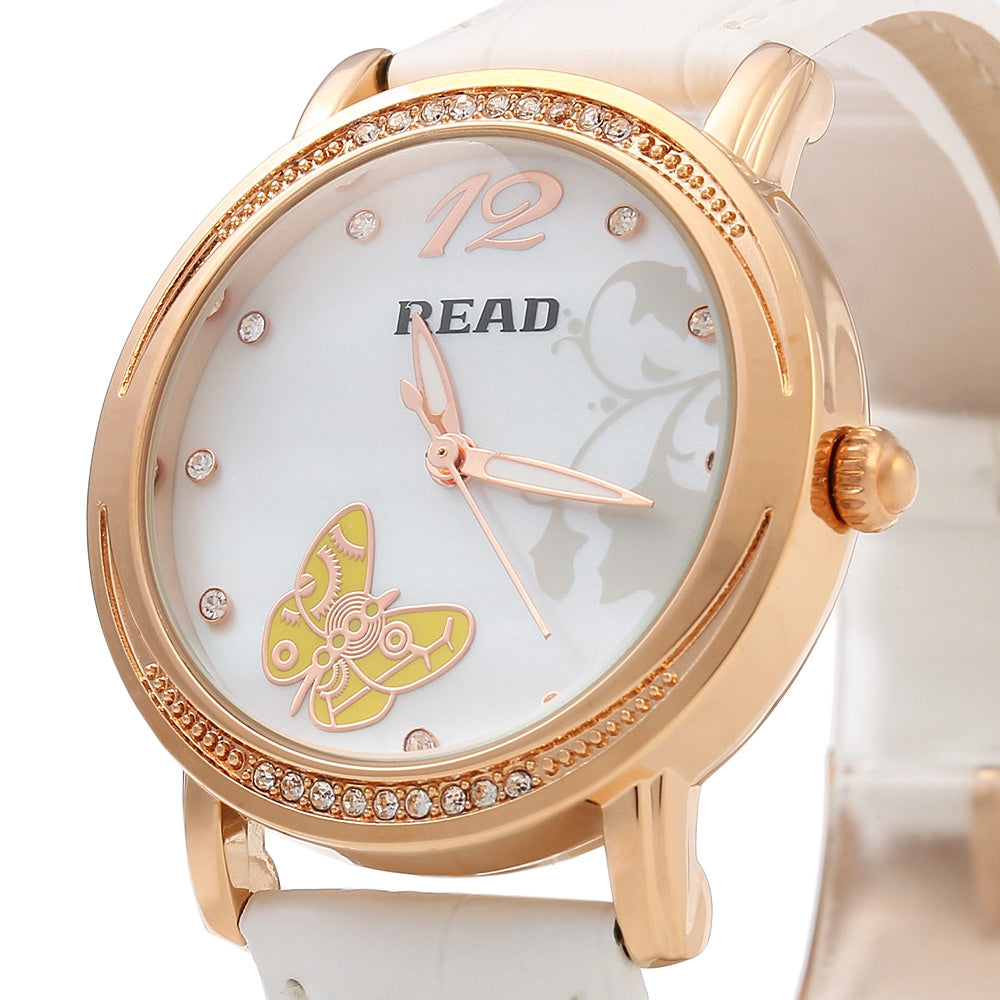 READ R21494 Female Quartz Watch, with imported quartz movement, 30 meter water resistance, artificial diamond dial decoration, alloy case, mineral tempered glass mirror, reflect its own characteristic, not only enjoy the elegant, gorgeous, but also can feel real high-end quality delicate life style. In the pace of exploration, to face the unknown always.